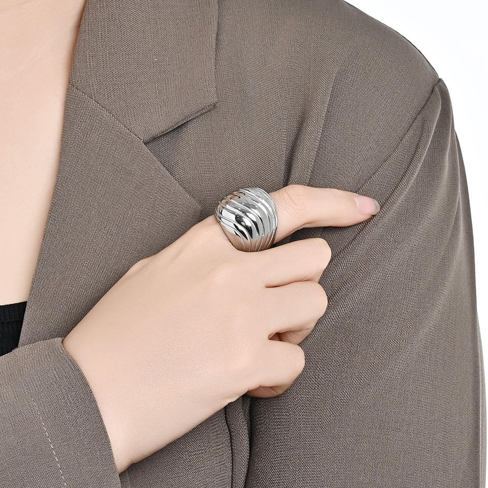 แหวนเหล็กไทเทเนียมเคลือบเงาสไตล์ยุโรปสำหรับผู้หญิง เครื่องประดับแฟชั่นสำหรับงานปาร์ตี้ สีทอง สีเงิน