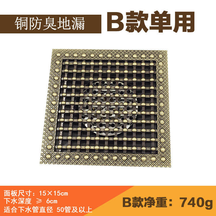 ท่อระบายน้ำพื้นทองแดงสไตล์ยุโรป ขนาดใหญ่พิเศษ 15x15 ซม. ป้องกันกลิ่นและแมลง สำหรับระเบียงกลางแจ้ง แบบย้อนยุค แผง 15 ซม.