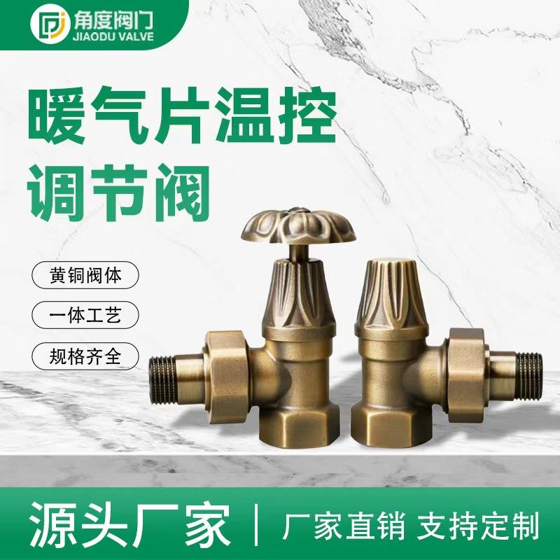วาล์วควบคุมอุณหภูมิแบบมุม 1/2 นิ้ว ทองเหลือง สำหรับระบบ HVAC สไตล์ยุโรป วิลล่าหรูหรา ย้อนยุค สีบรอนซ์โบราณ