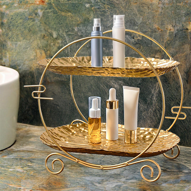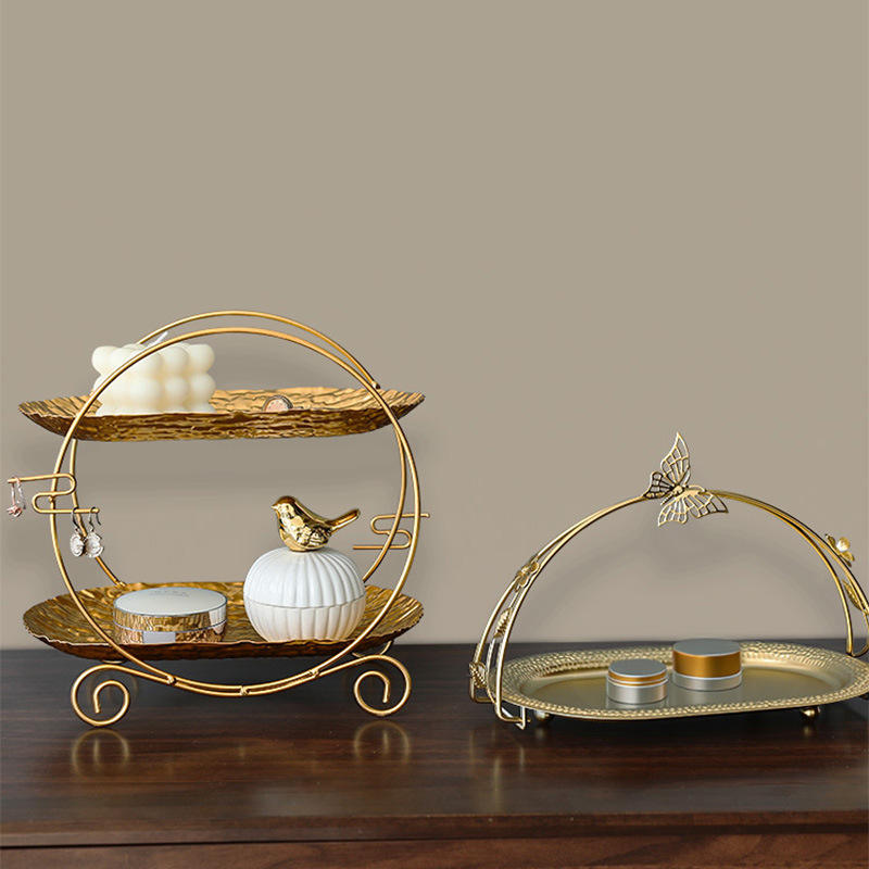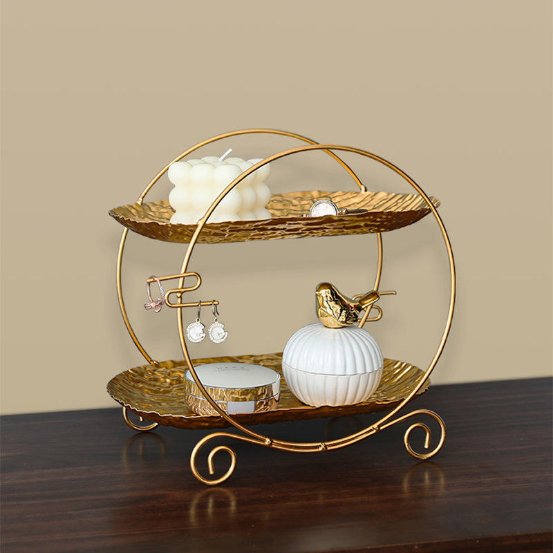 ชั้นวางเค้กเหล็กสไตล์ยุโรป ชั้นวางขนมโลหะสำหรับโรงแรม ของตกแต่งบ้าน ถาดเก็บอาหารและเครื่องสำอาง