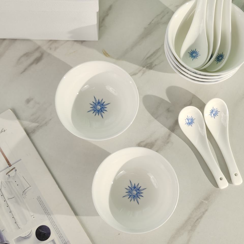 ชุดถ้วยกาแฟ จาน ชาม ช้อน สไตล์ยุโรป หรูหราแบบเรโทร เป็นมิตรกับสิ่งแวดล้อม ทำจากเซรามิกเนื้อละเอียด ลายดาวนำโชค พร้อมโลโก้สั่งทำพิเศษ เหมาะสำหรับเป็นของขวัญ