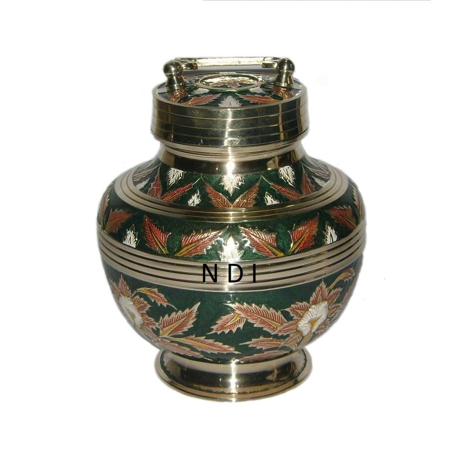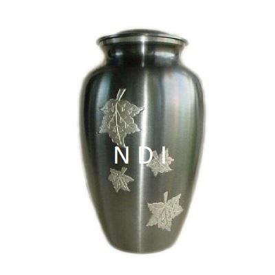 European Style Memorial Urn With Nickel Plated Finishing With Leaf Print Sticker Adult Ashes Cremation Decorative Funeral Urn