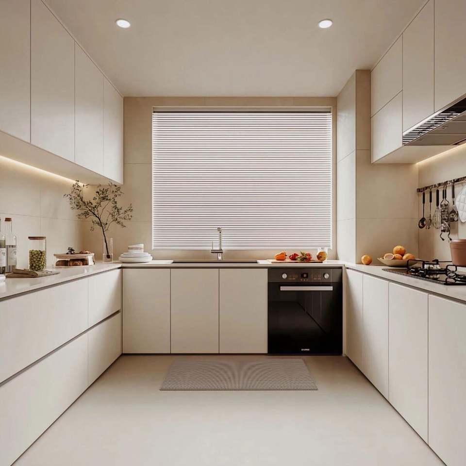 ตู้ครัวไม้อัดดีไซน์ยุโรปทันสมัยสีดำสั่งทำพิเศษ พร้อมฮาร์ดแวร์คุณภาพสูง