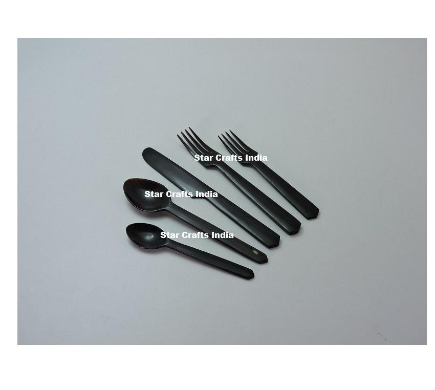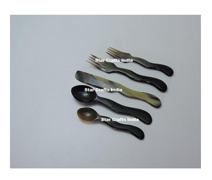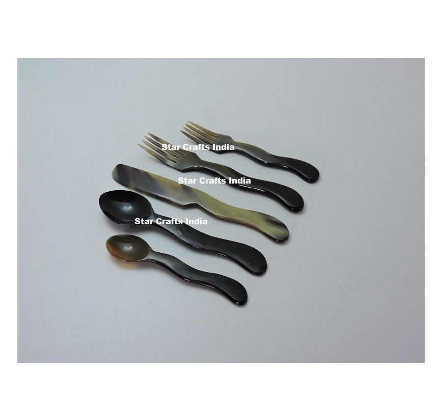ชุดช้อนส้อมมีดทำจากเขาสัตว์ธรรมชาติสไตล์ยุโรป เป็นมิตรกับสิ่งแวดล้อม ชุดช้อนส้อมสำหรับของหวาน สไตล์ไวกิ้ง หรูหรา