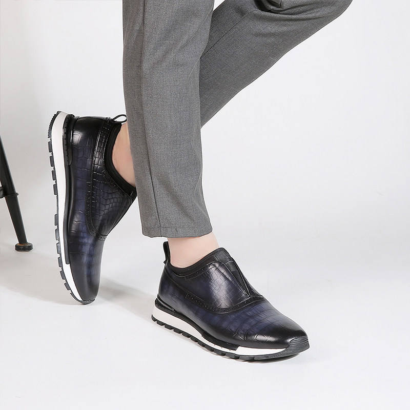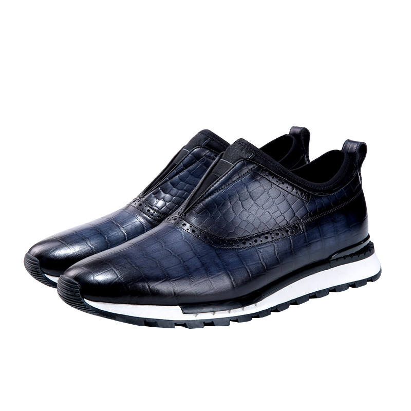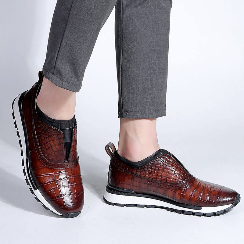 รองเท้าหนังทำมือแบบสวม สไตล์ยุโรป พื้นหนา ลายหนังจระเข้ขัดเงา