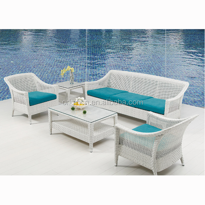 ชุดโซฟาหวายสีขาวสไตล์ยุโรปสำหรับการพักผ่อนกลางแจ้ง