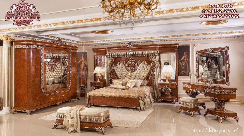 European Style Queen Size Bed With Nightstand