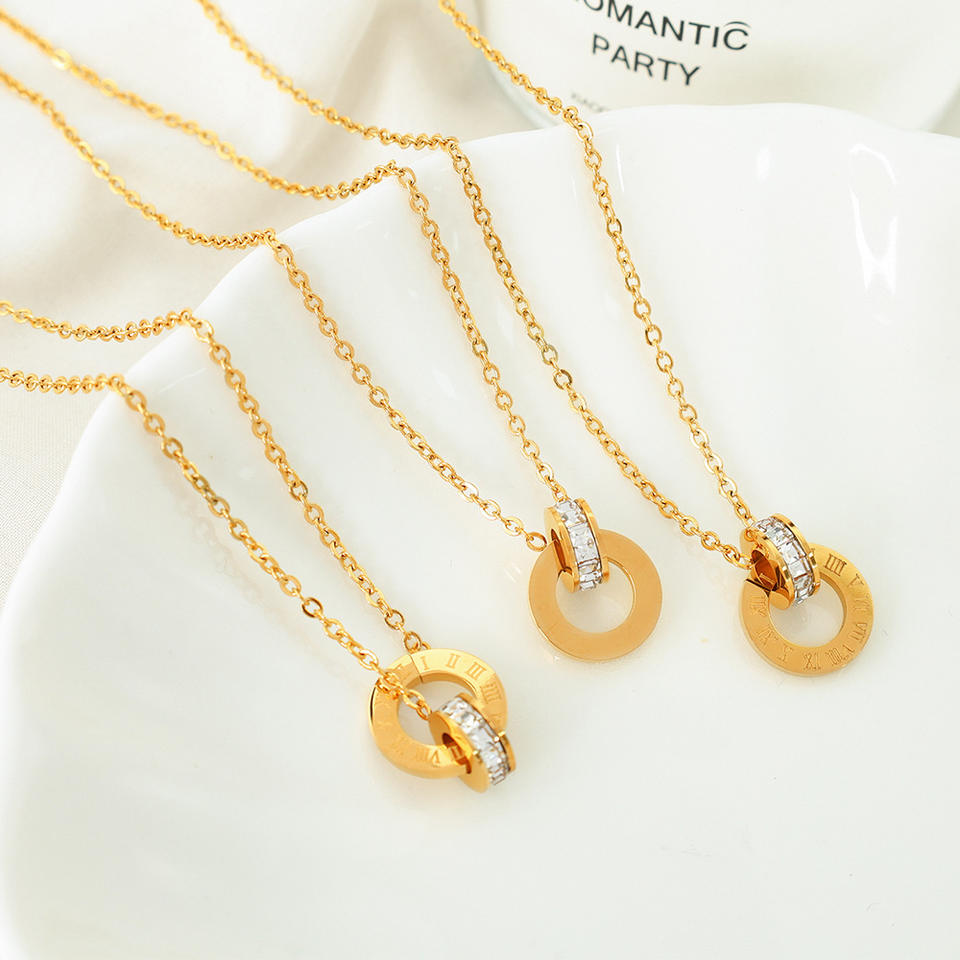 สร้อยคอวงแหวนคู่สไตล์ยุโรปตัวเลขโรมัน ชุบทอง 18K ทำจากไทเทเนียมสตีล ของขวัญสำหรับผู้หญิง ดีไซน์เรขาคณิต