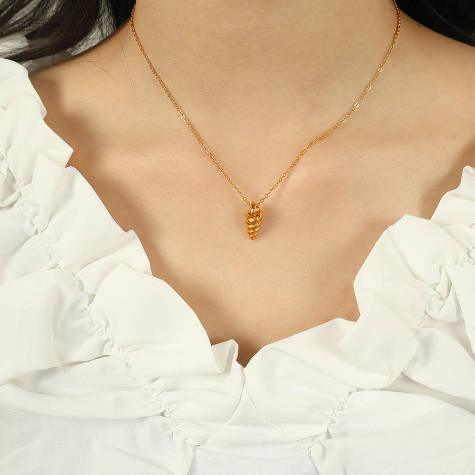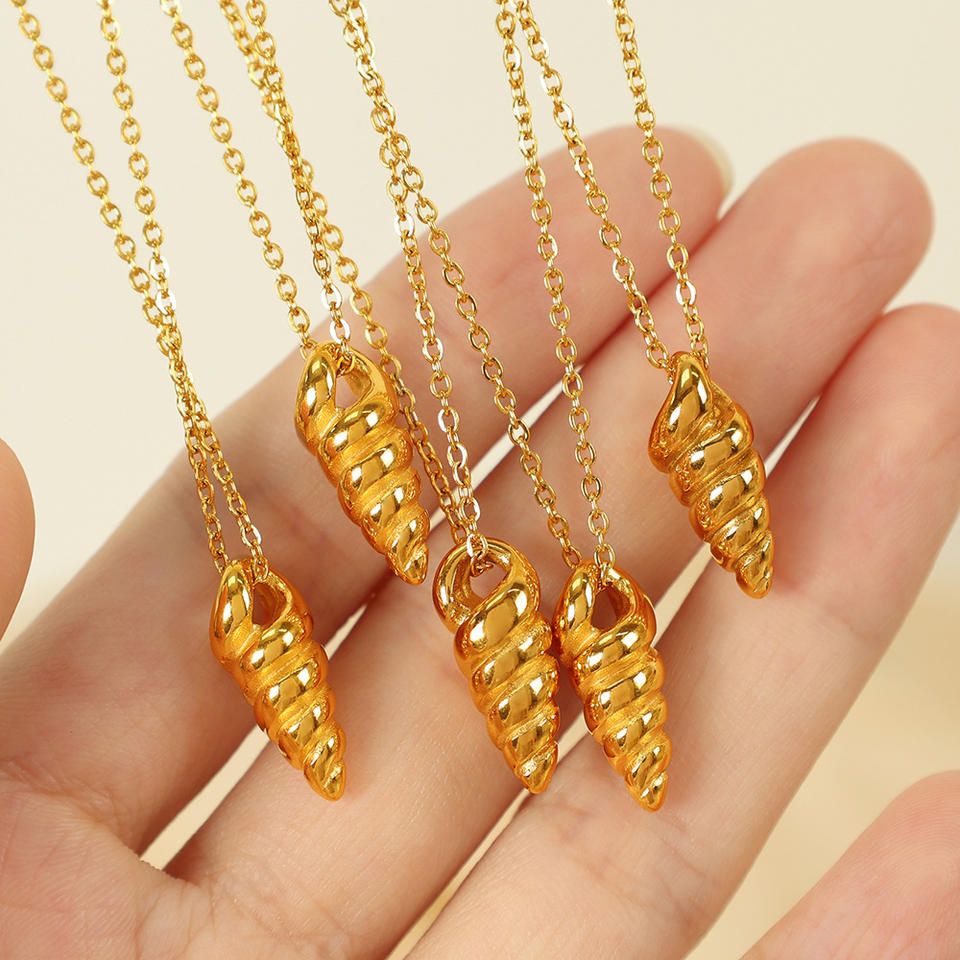 สไตล์ยุโรปไทเทเนียมเหล็กสร้อยคอรูปทรงเกลียวมินิมอลลิสต์ดีไซน์โซ่กระดูกไหปลาร้าสำหรับผู้หญิงสีทอง XL36