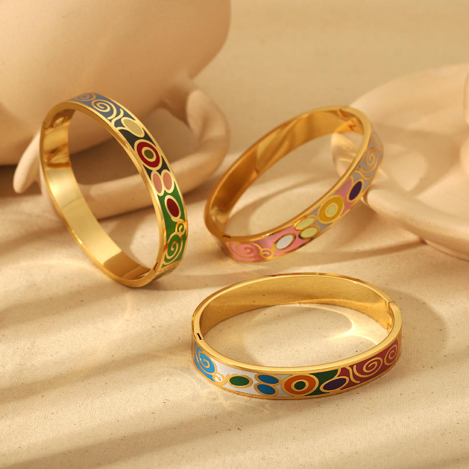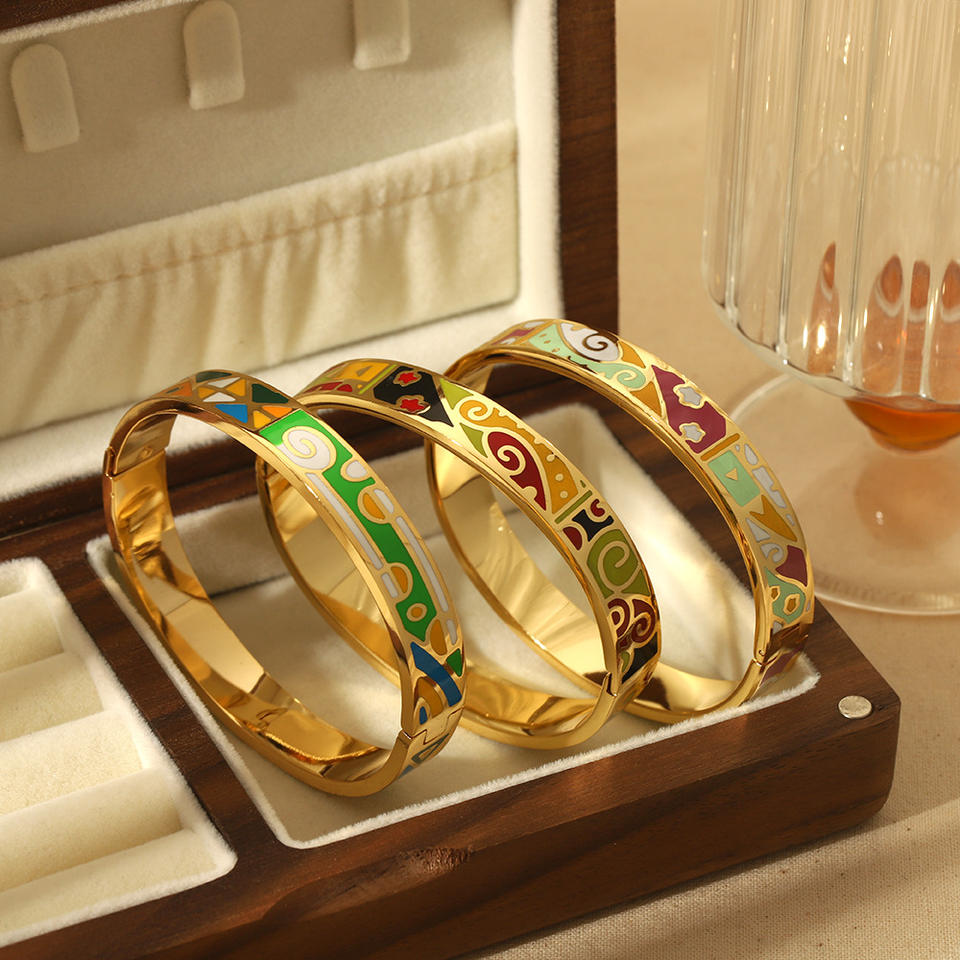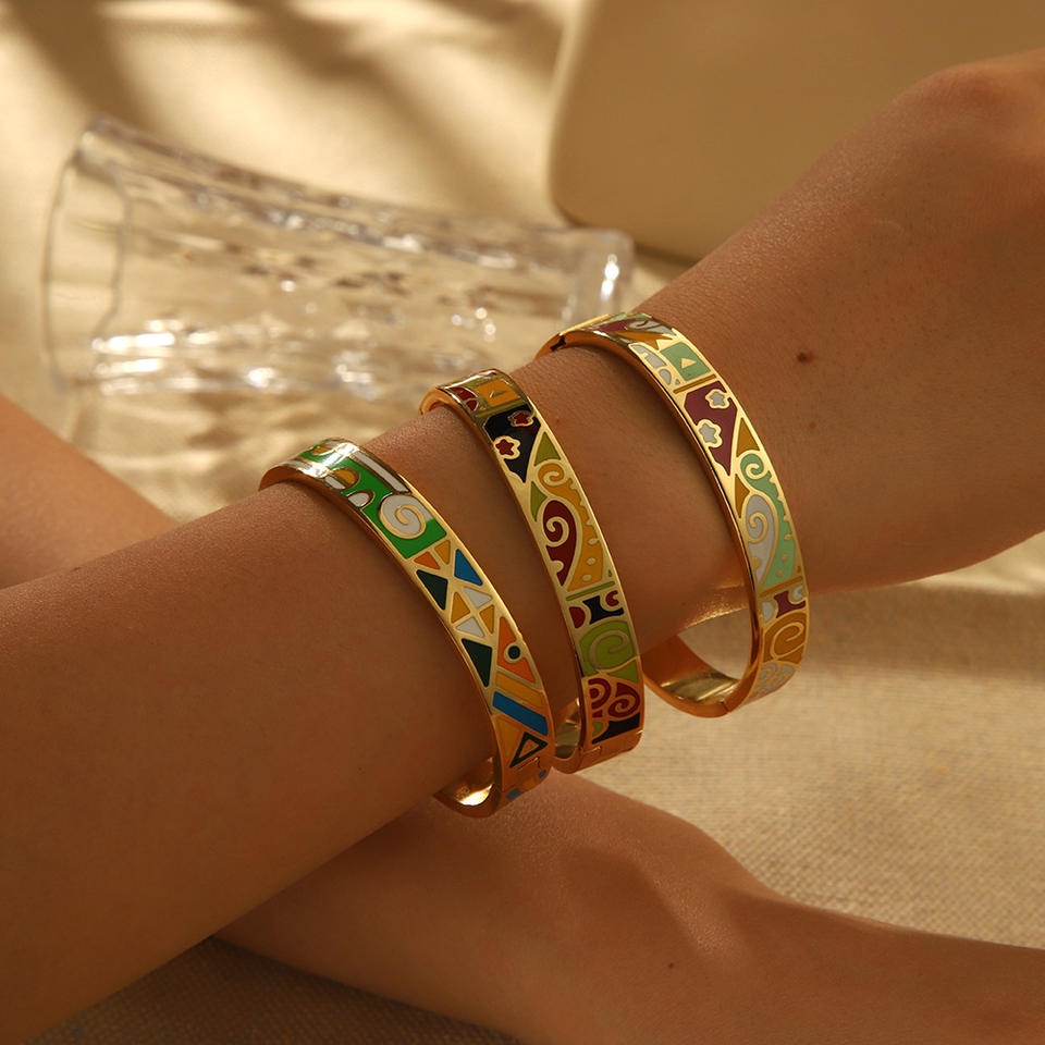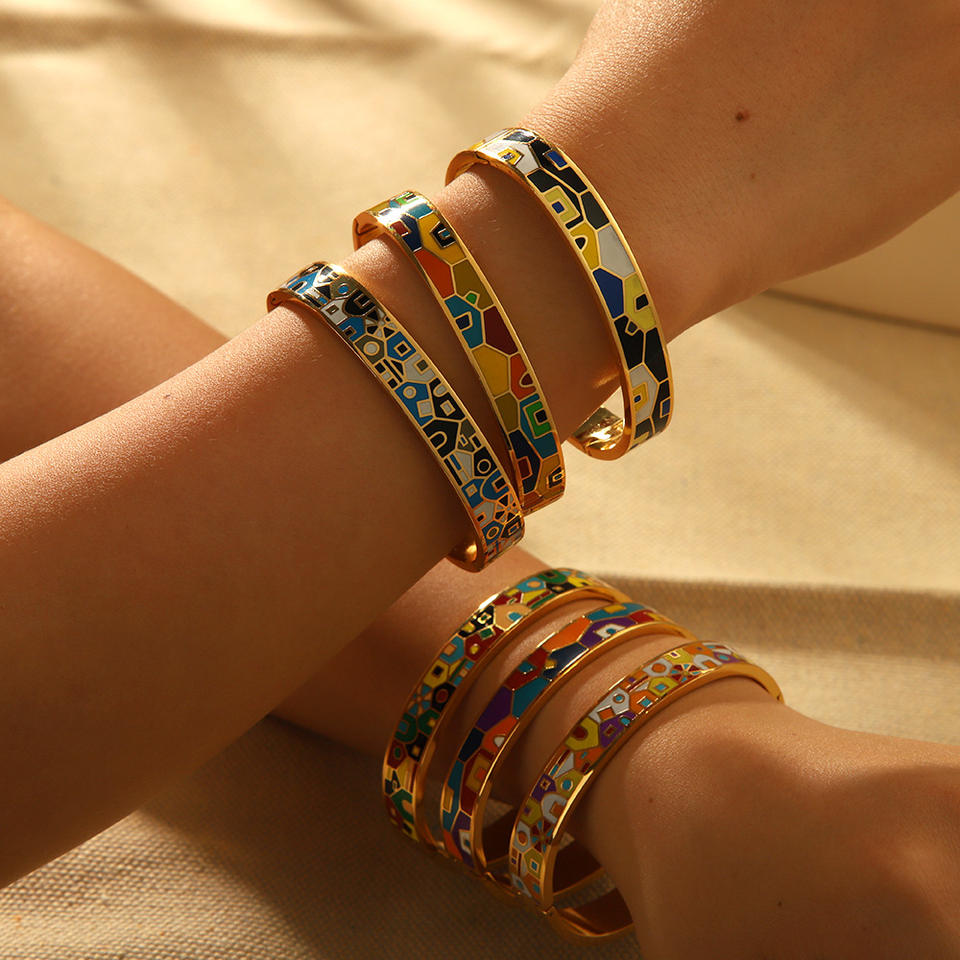 กำไลข้อมือไทเทเนียมเคลือบทอง 18K ลายเรขาคณิต สไตล์ยุโรป สำหรับทุกเพศ