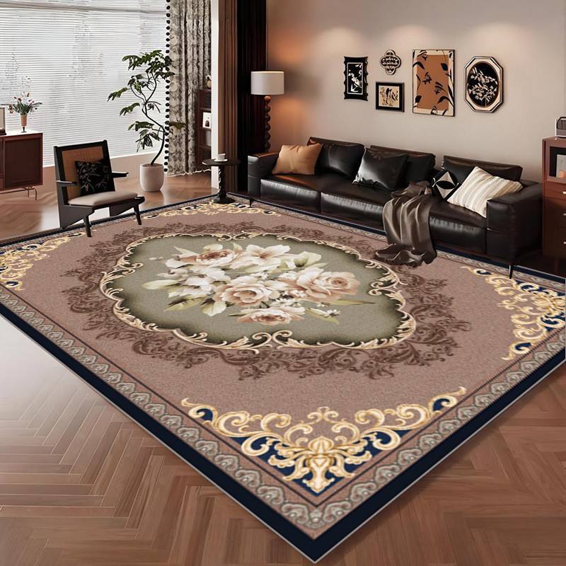 พรมลายดอกไม้สไตล์วินเทจยุโรป รูปทรงสี่เหลี่ยมผืนผ้า ผลิตจากเส้นใยโพลีเอสเตอร์ กันลื่น เหมาะสำหรับห้องนั่งเล่นและห้องนอน รุ่น H-277-7