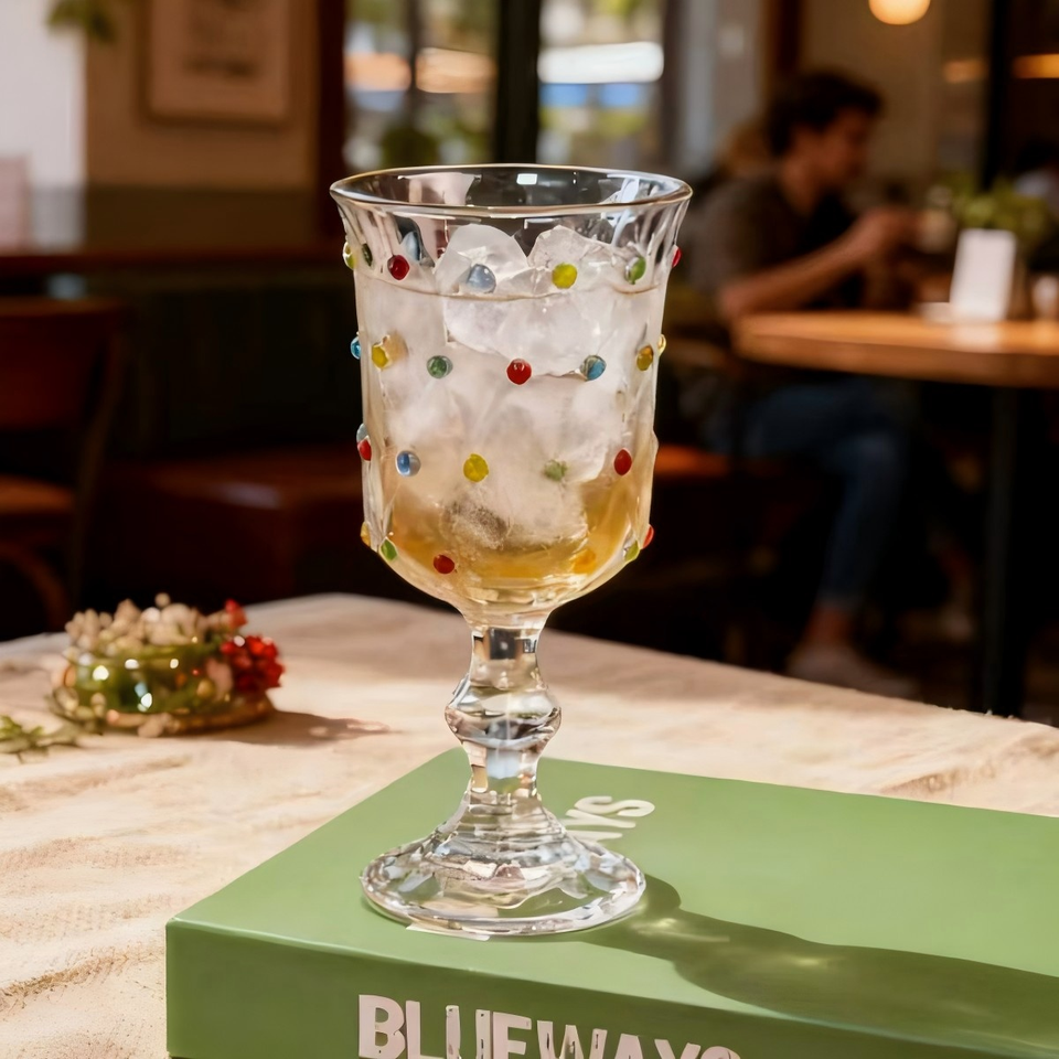 แก้วไวน์แดงลายจุดสไตล์วินเทจยุโรป แก้วไวน์เพ้นท์ลายคุณภาพสูง แก้วบรั่นดีแชมเปญวินเทจ