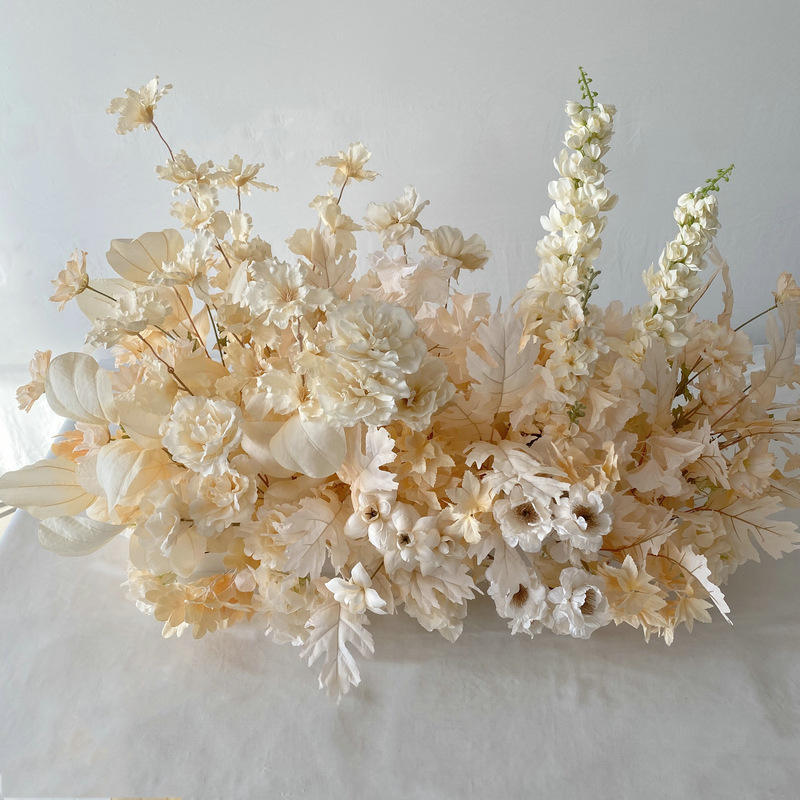 ชุดอุปกรณ์ตกแต่งบ้านแถวดอกไม้สำหรับงานแต่งงานแบบชาวยุโรปดอกไม้ผ้าไหมจำลองสีแชมเปญสำหรับงานรับปริญญา