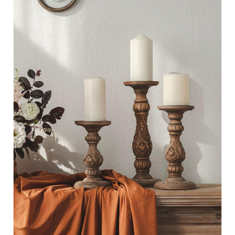 เชิงเทียนงานแต่งงานสไตล์วินเทจคลาสสิก ทำจากไม้โอ๊คยุโรปสีขาวขัดเงา เป็นมิตรกับสิ่งแวดล้อม พร้อมงานแกะสลักและพิมพ์ตัวอักษร