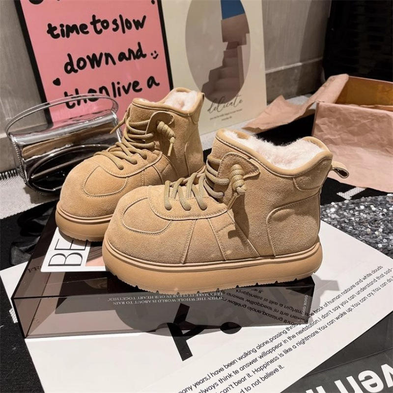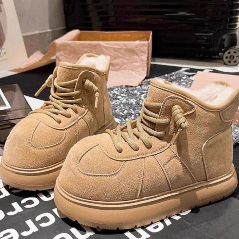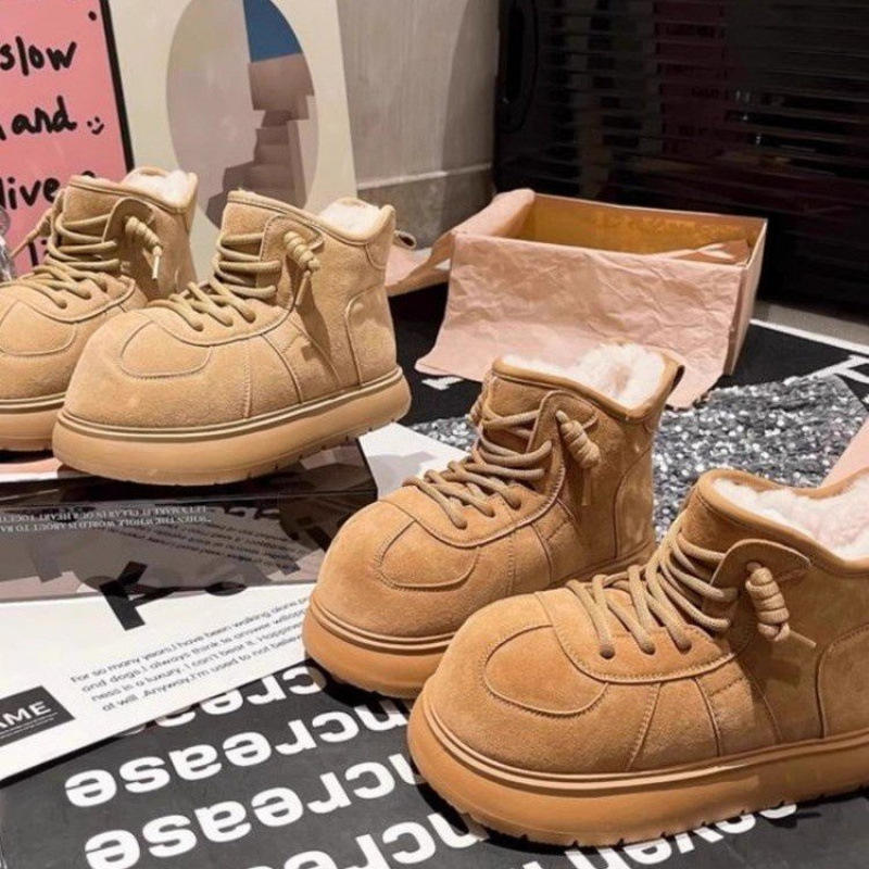 รองเท้าบูทลุยหิมะแบบหนาของผู้หญิงแนวยุโรปวัสดุผ้าฝ้ายกันหิมะแบบมีเชือกผูก