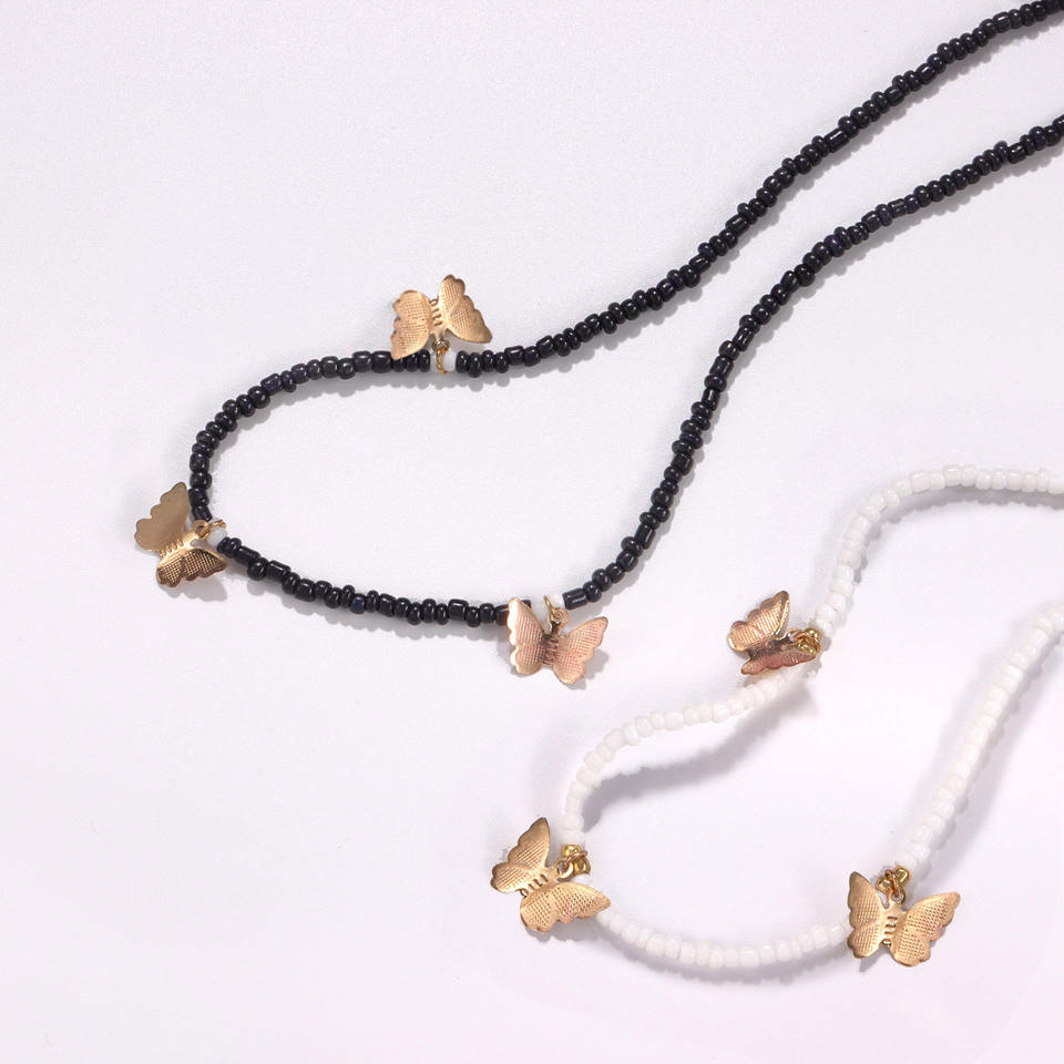 เครื่องประดับข้ามพรมแดนยุโรปและอเมริกาแฟชั่นสร้อยคอรูปผีเสื้อทรงเรขาคณิตผสมลูกปัดสีทึบสำหรับผู้หญิงปรับแต่งได้