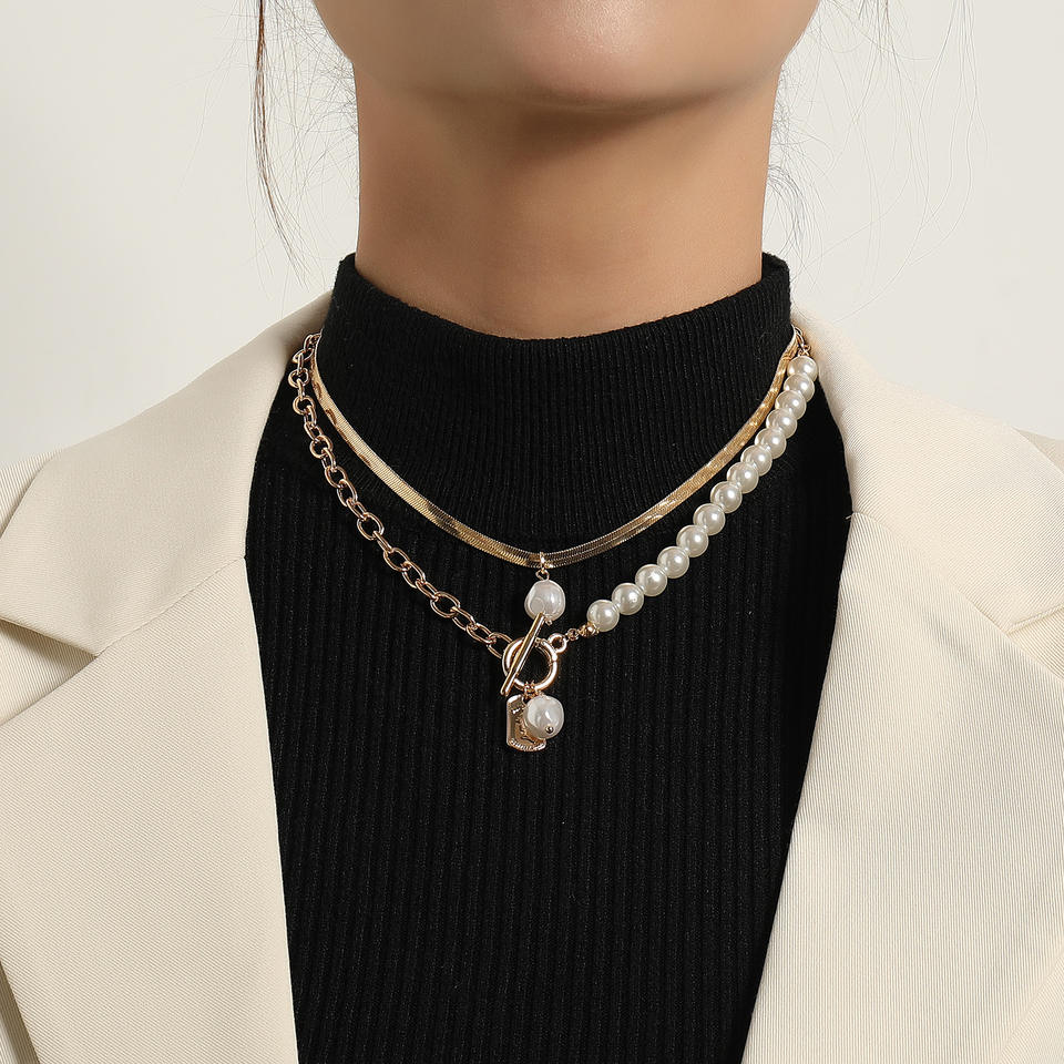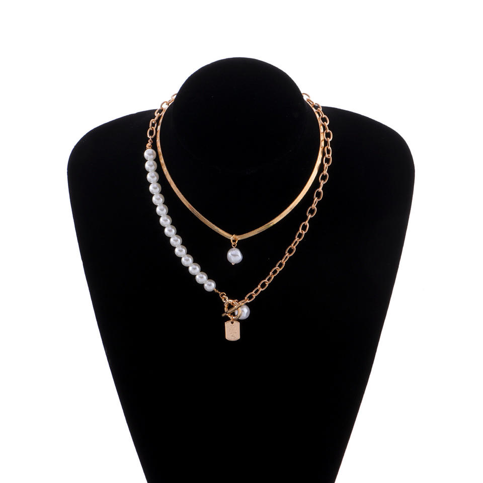 European and American Cross-Border Jewelry OT Buckle Crown Queen Pearl for Women Hot Selling Snake Bone Square Pendant Necklace
