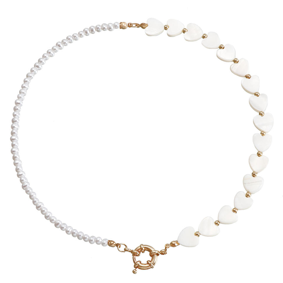 เครื่องประดับแนวยุโรปและอเมริกันประดับลูกปัดมุกเทียมรูปหัวใจเปลือกหอยชั้นเดียวแบบเรียบง่าย