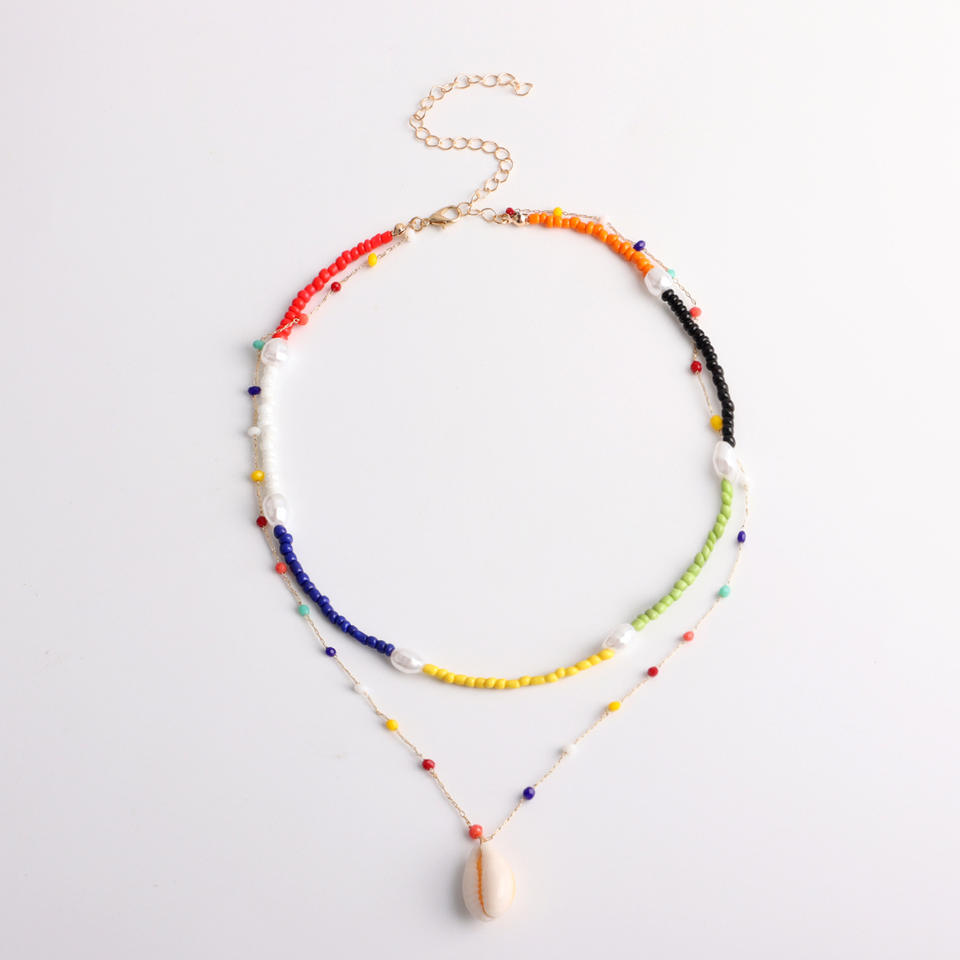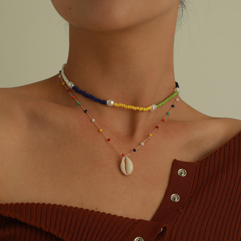 เครื่องประดับข้ามพรมแดนแบบยุโรปและอเมริกาหรูหราเรียบง่ายสีสันสดใสจี้มุกสำหรับผู้หญิงสร้อยคอไข่มุกพังก์ลูกปัดข้าว