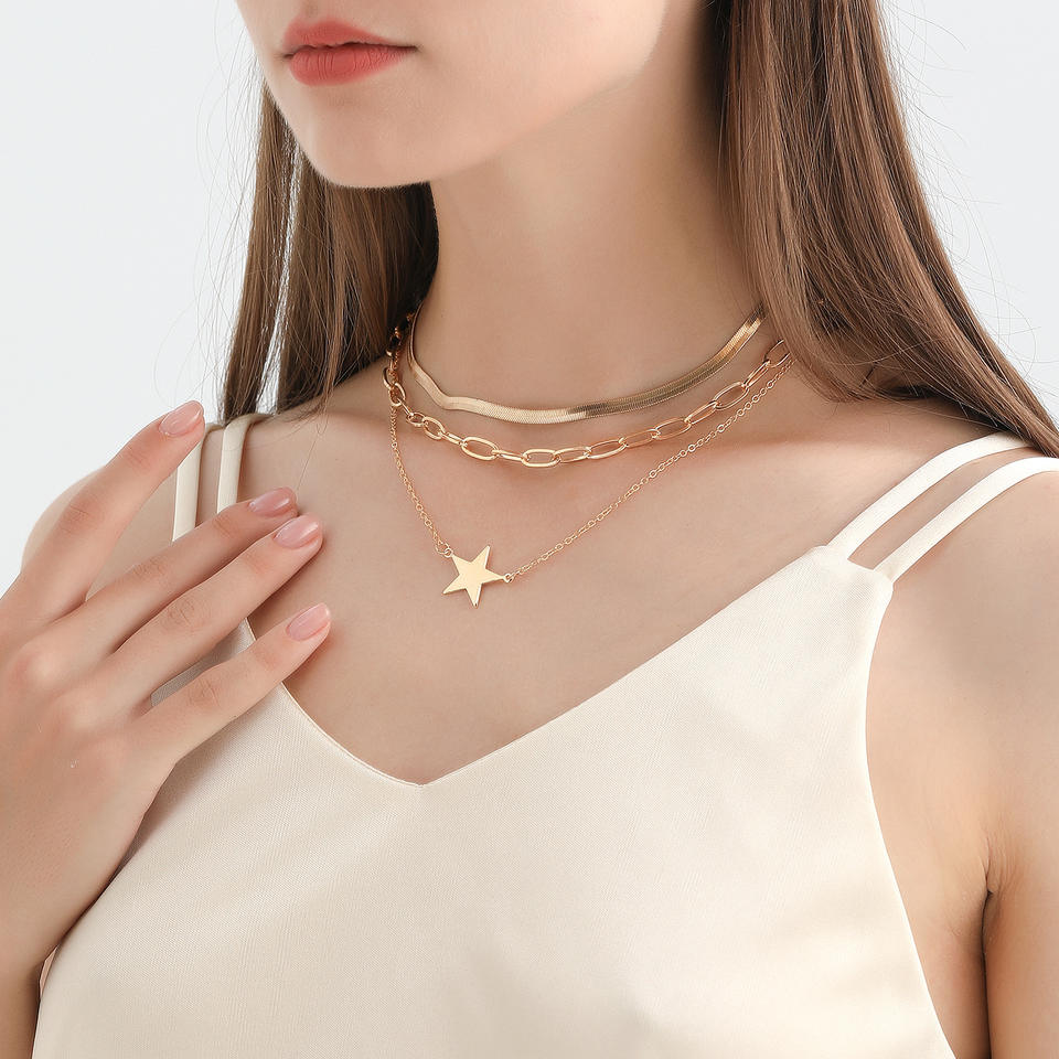 เครื่องประดับแนวยุโรปและอเมริกาแบบข้ามพรมแดนสร้อยคอแบบฮิปฮอปสไตล์พังก์ชั้นรูปดาวทำจากโลหะแบบเรียบง่ายสายสร้อยกระดูกงู