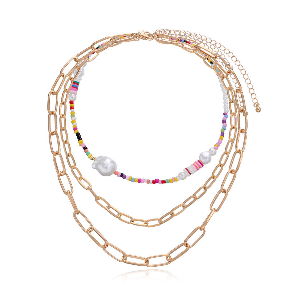 เครื่องประดับแนวยุโรปและอเมริกาสร้อยคอโซ่โลหะแฟชั่นสำหรับผู้หญิงลูกปัดอะคริลิคดินเผาสีสันสดใส