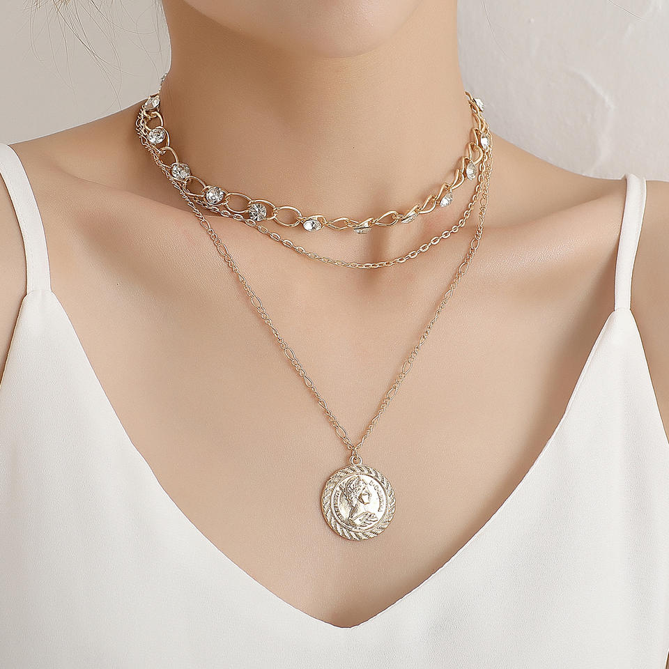 เครื่องประดับแฟชั่นสไตล์ยุโรปและอเมริกันจี้อวตารสำหรับผู้หญิงประดับพลอยเทียมหลายชั้นอเนกประสงค์
