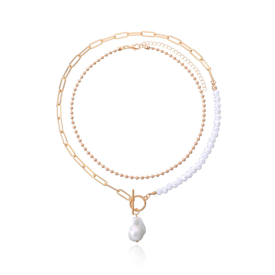 เครื่องประดับแบบข้ามพรมแดนแนวยุโรปและอเมริกันจี้มุกสั้นหรูหราสำหรับผู้หญิงเก๋ไก๋ทันสมัยสองชั้น