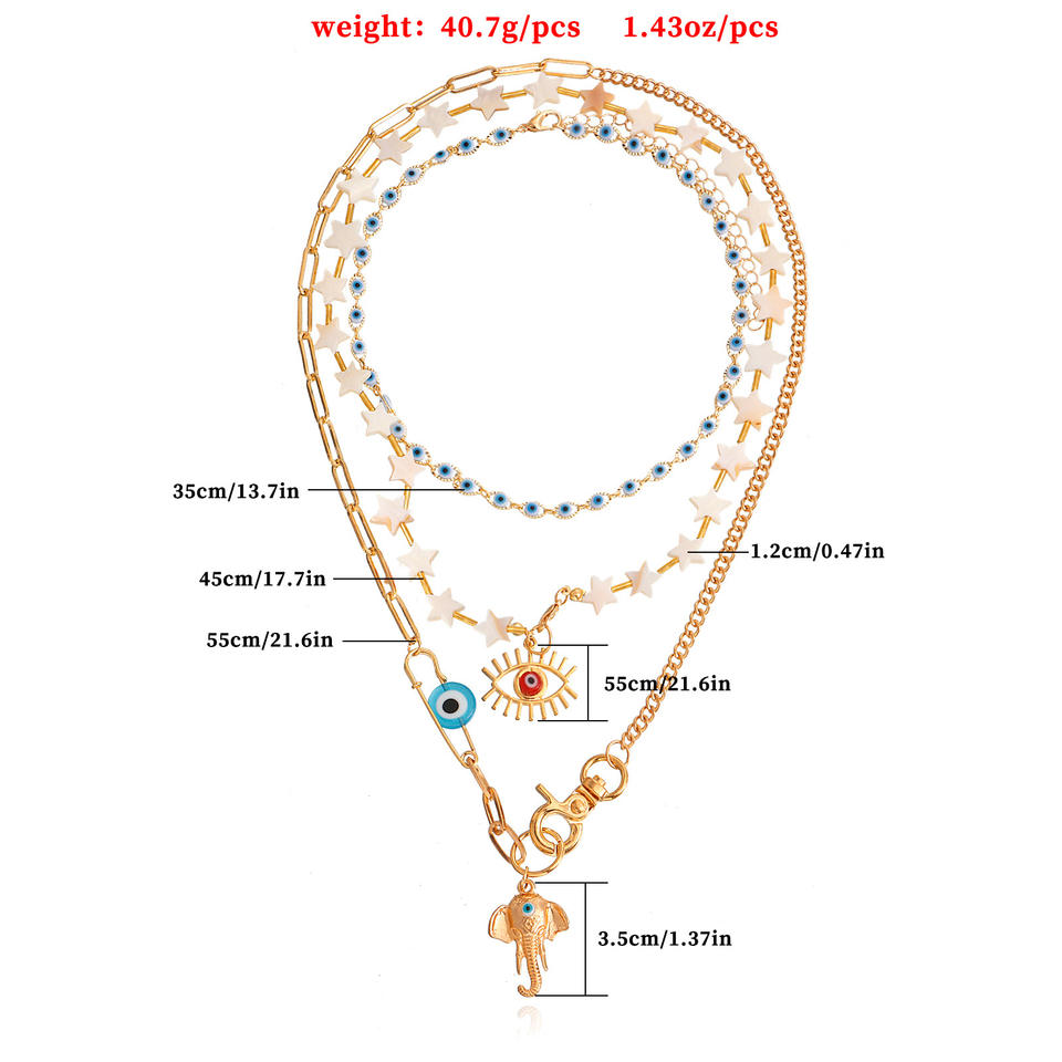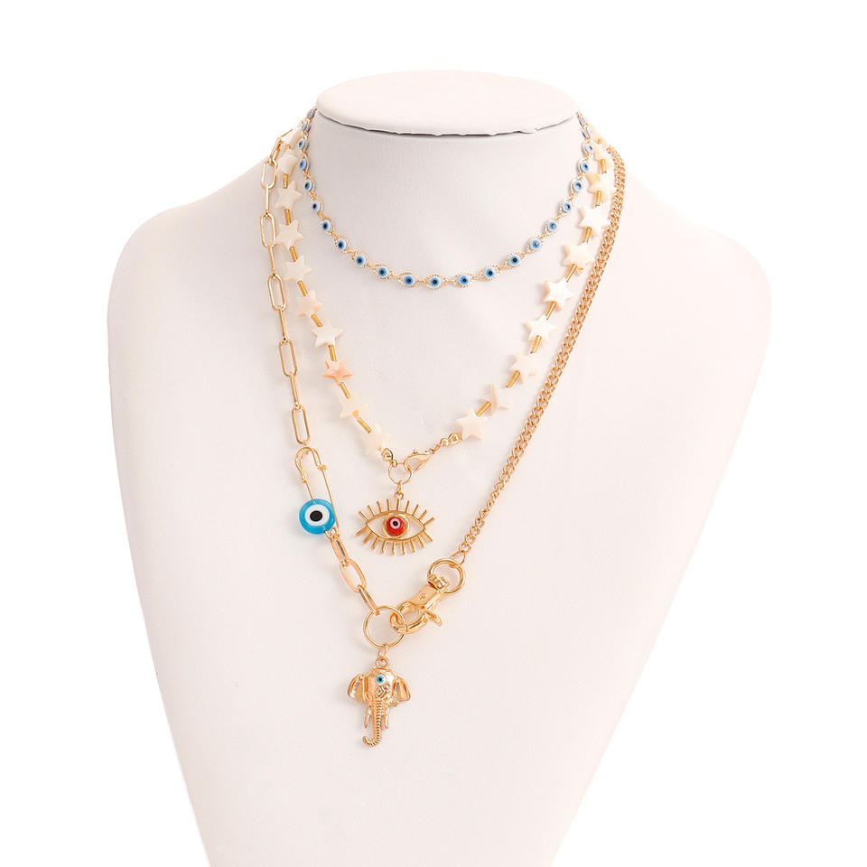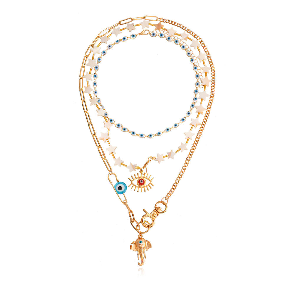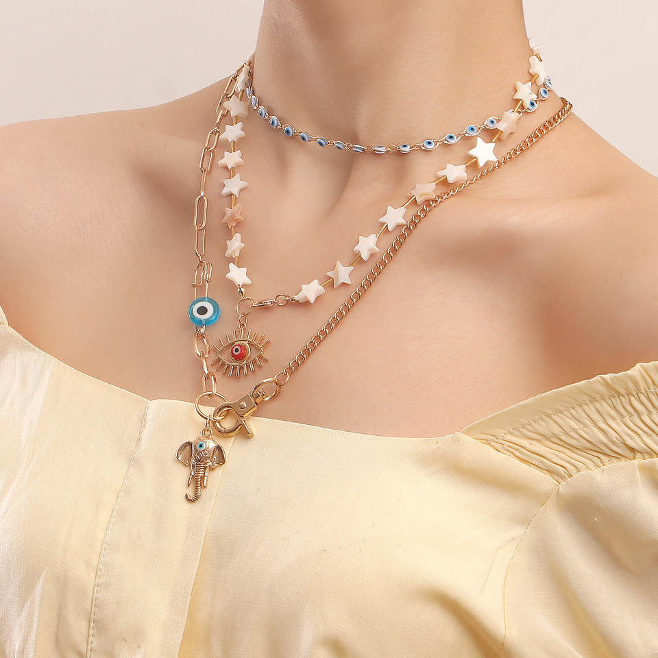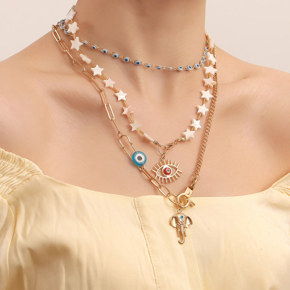 เครื่องประดับแนวยุโรปและอเมริกาแนวโบฮีเมียนสร้อยคอห้าแฉกทันสมัยหลายชั้นสำหรับผู้หญิงช้าง