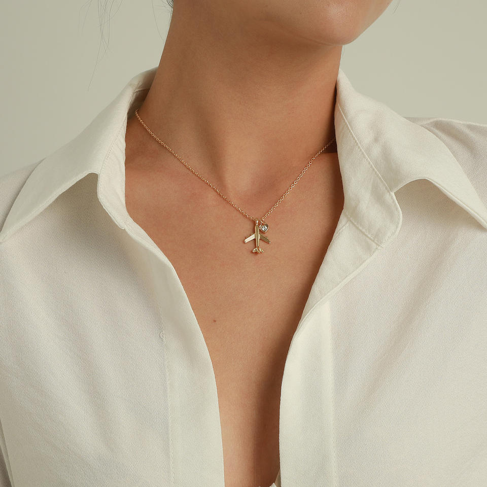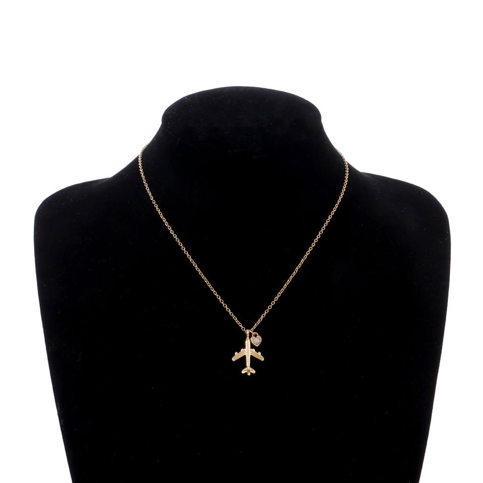 เครื่องประดับแนวยุโรปและอเมริกาจี้747โบอิ้งสำหรับผู้หญิงสร้อยคอเครื่องบินประดับพลอยเทียมรูปหัวใจแบบเรียบง่าย
