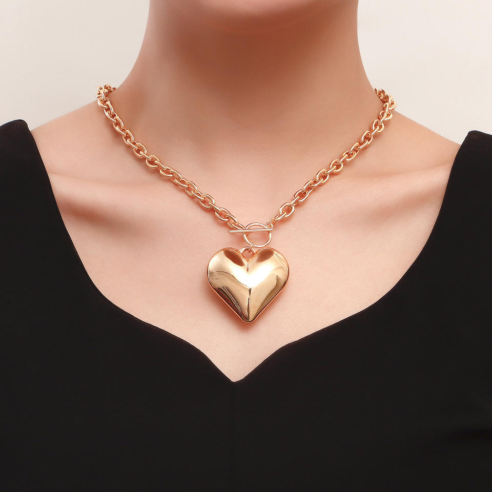 เครื่องประดับข้ามพรมแดนยุโรปและอเมริกาหัวเข็มขัดแบบเรียบง่ายแบบ OT BUCKLE ชั้นเดียวทรงเกินจริงรูปหัวใจสีพีชขนาดใหญ่สุดสร้างสรรค์สำหรับผู้หญิงหนา