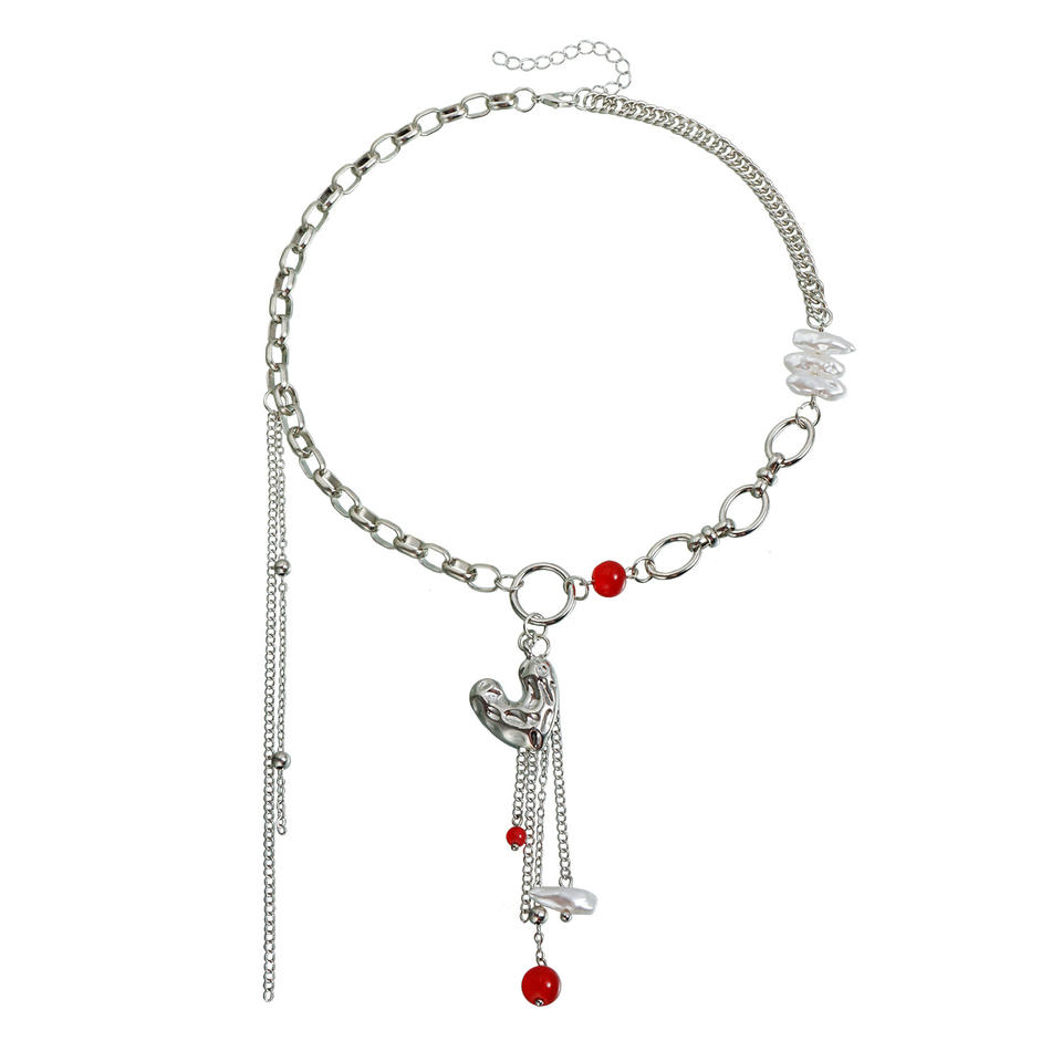 European and American Cross-Border Jewelry Dark Fashion Irregular Heart Ins Splicing Hot Girl Style Tassel Necklace
