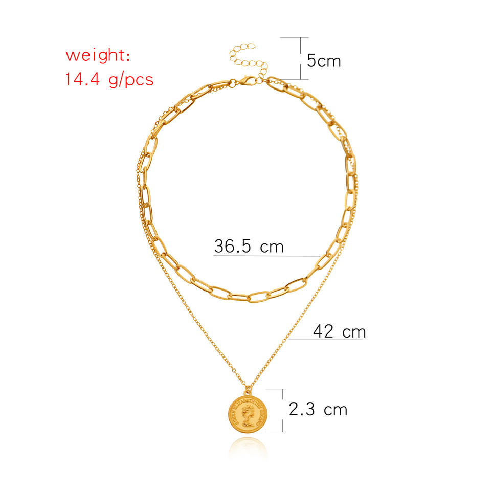 เครื่องประดับแฟชั่นแบบเส้นขอบยุโรปและอเมริกาห่วงโซ่ทรงเรขาคณิตสองชั้นสำหรับผู้หญิงสไตล์พังก์สตรีทสวยอวตาร