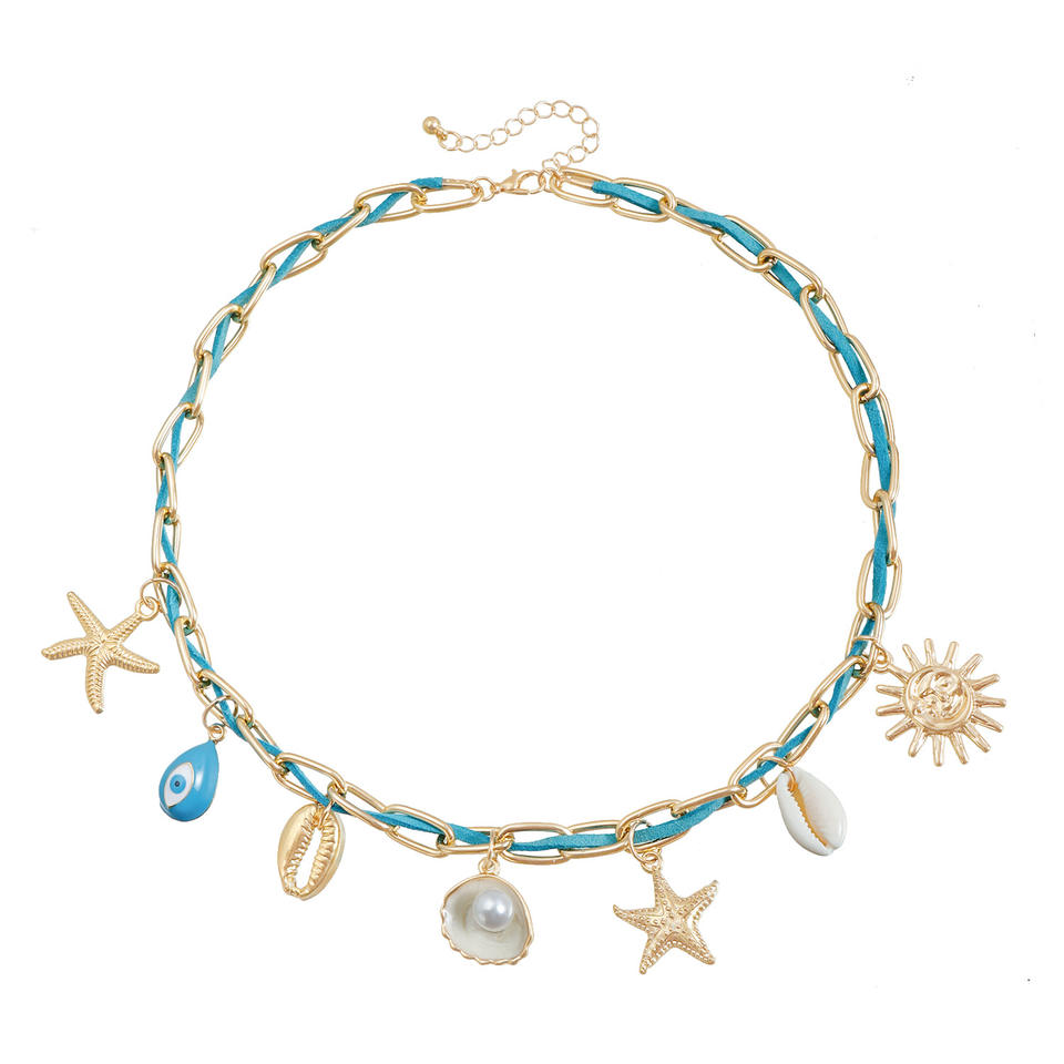 เครื่องประดับข้ามพรมแดนยุโรปและอเมริกาในชายหาดสไตล์สบายๆเปลือกหอยปลาดาวองค์ประกอบห่วงโซ่แสงระดับไฮเอนด์
