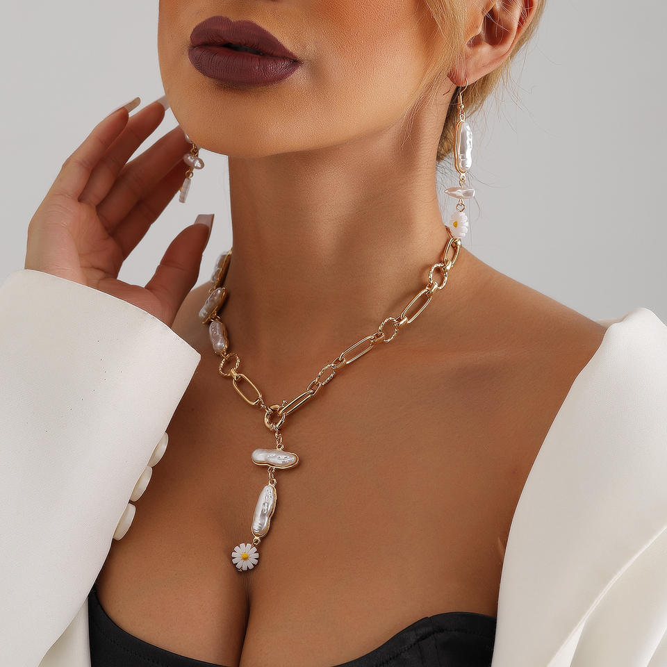เครื่องประดับข้ามพรมแดนยุโรปและอเมริกามุกเทียมอเนกประสงค์สำหรับผู้หญิงสร้อยคอแฟชั่นแบบโซ่ต่อกัน