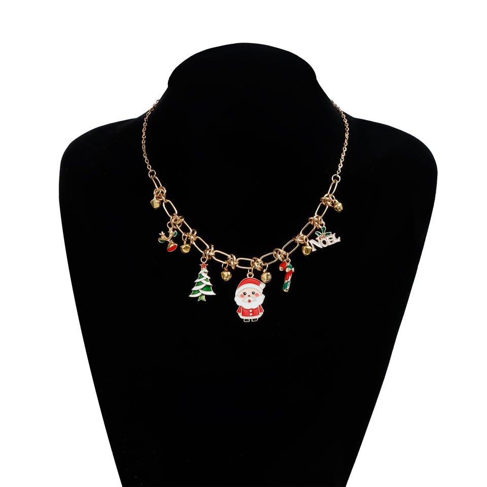 สร้อยคอคริสมาสต์ประดับแนวยุโรปและอเมริกาสำหรับผู้หญิงซานาคลอสสีบล็อคแฟชัน Choker ปีใหม่