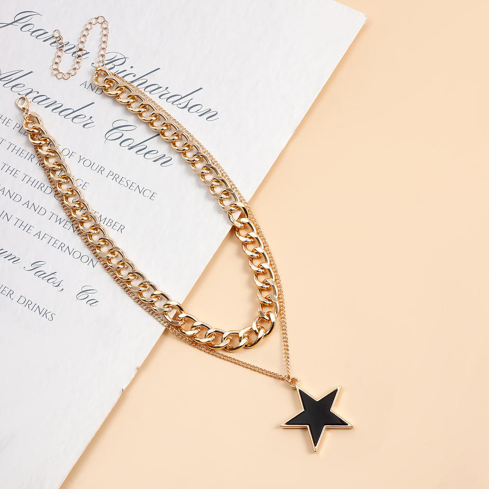 เครื่องประดับสำหรับการค้าต่างประเทศยุโรปและอเมริกาทันสมัยสร้อยคอไข่มุกแท้ดาวห้าแฉกสีดำ