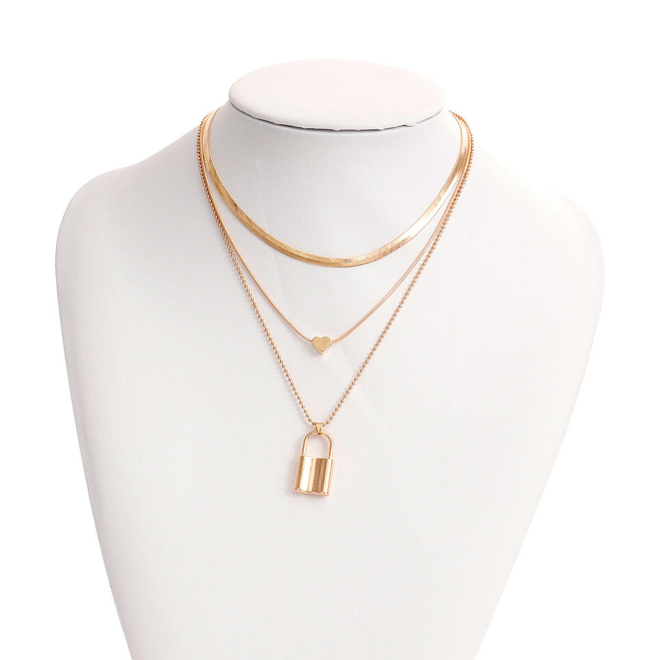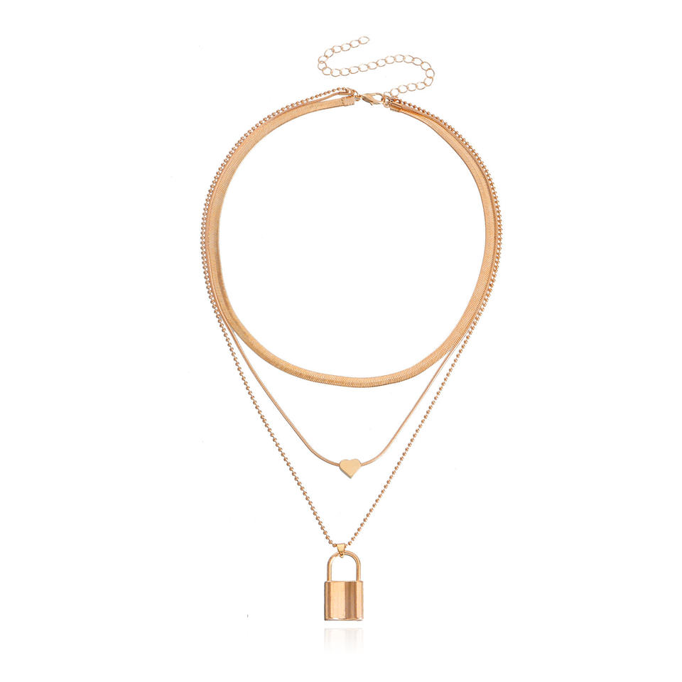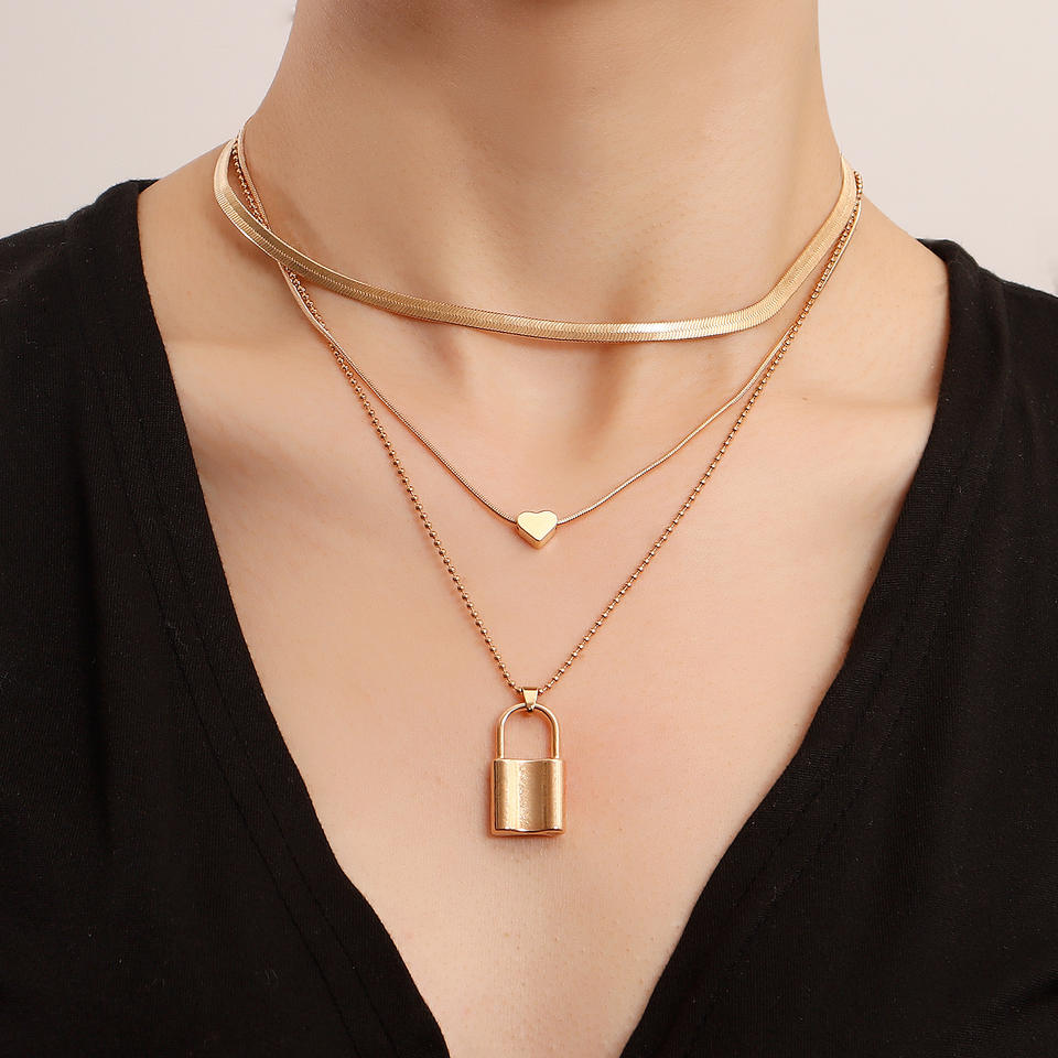 พวงกุญแจงูหลายชั้นแบบแบนจี้หัวใจสำหรับผู้หญิงสเวตเตอร์สร้อยคอไฮเอนด์เครื่องประดับแนวพังก์ยุโรปและอเมริกา