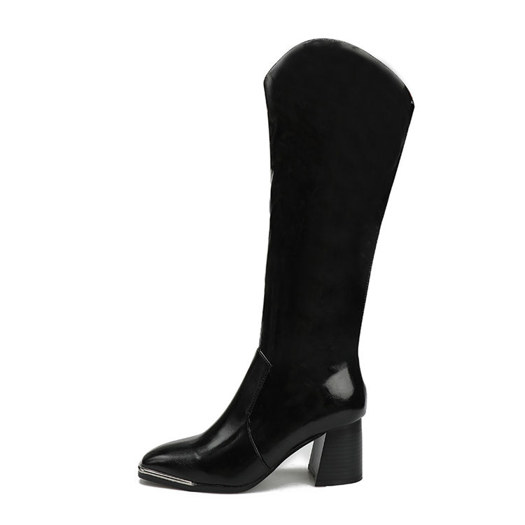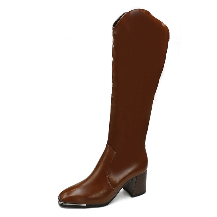 รองเท้าบูทคาวบอยทรงสูงถึงเข่า ส้นหนา สไตล์ยุโรปและอเมริกา หัวเหลี่ยม ซิปด้านข้าง