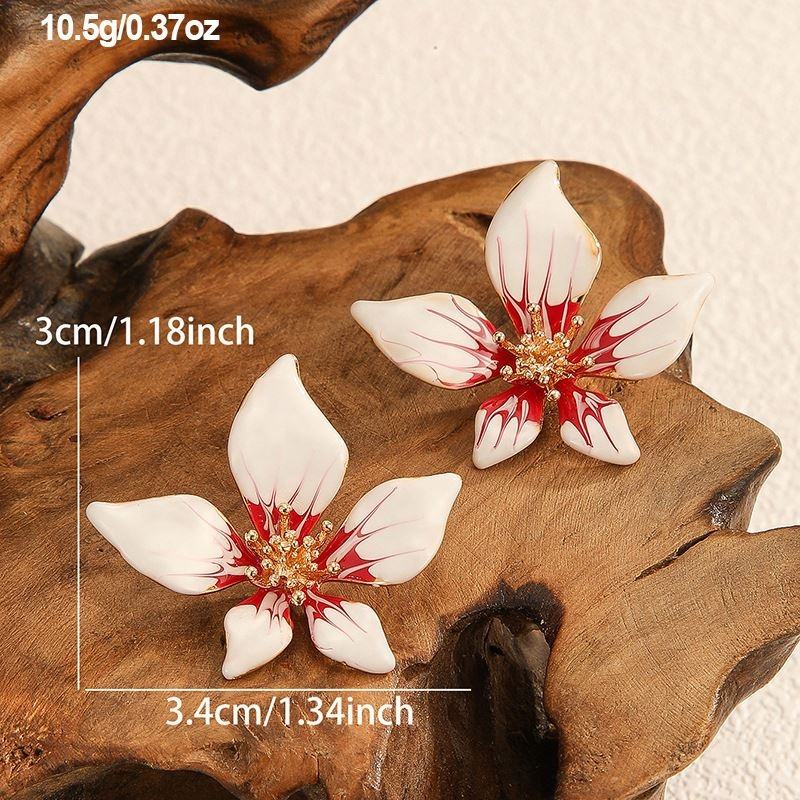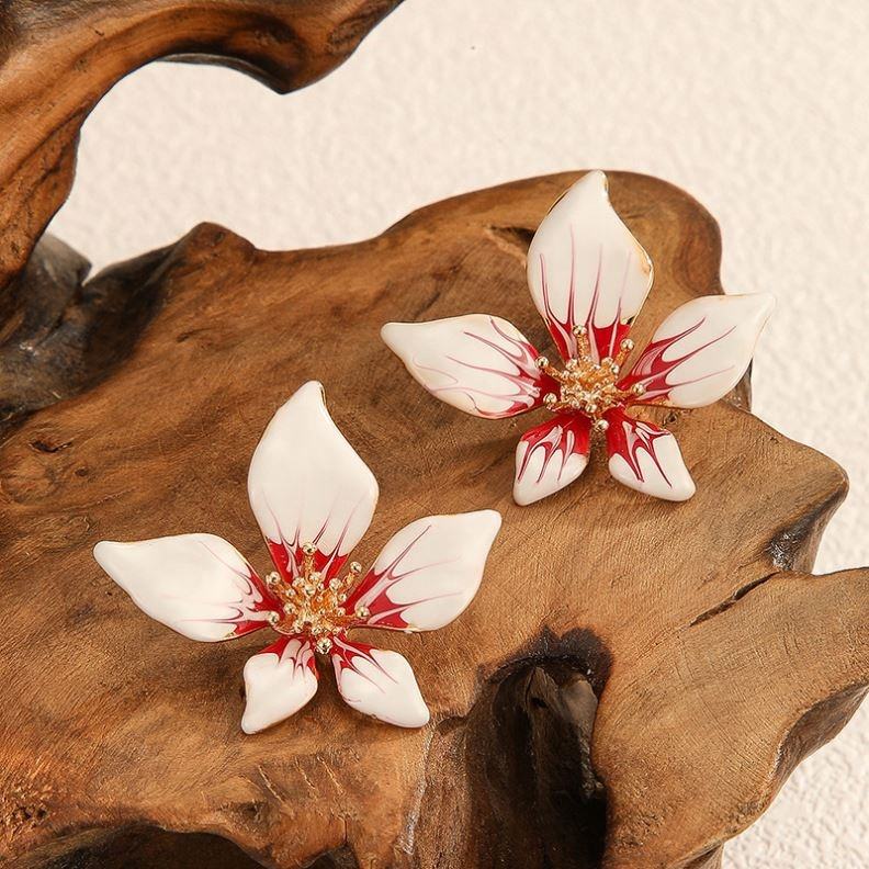 ต่างหูแบบติดหูทรงดอกไม้ห้ากลีบสีชมพูไล่เฉด ดีไซน์หวานหรูหรา สไตล์ยุโรปอเมริกัน ชุบทอง ผลิตจากโลหะผสมสังกะสี