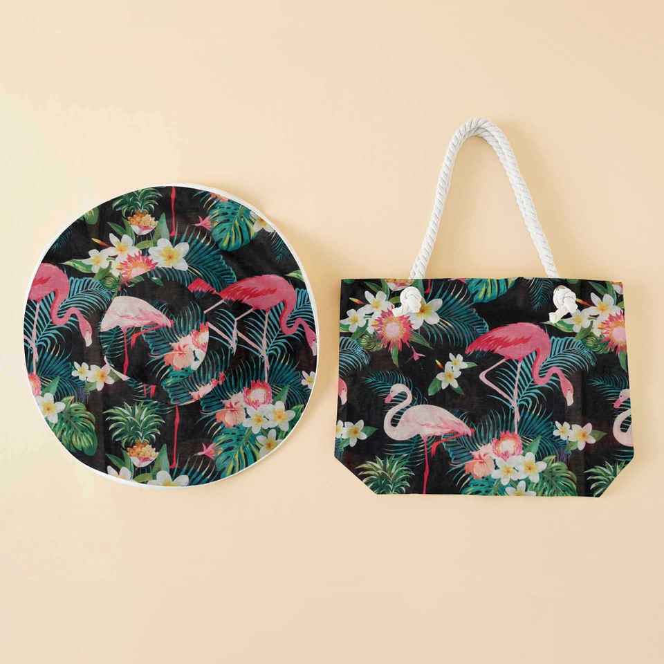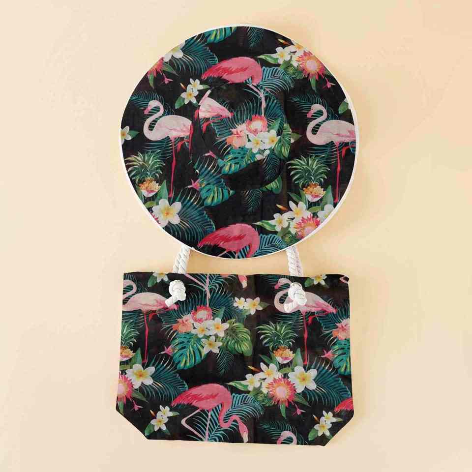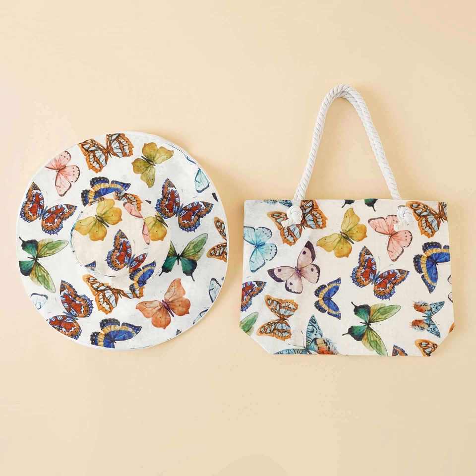ชุดหมวกชายหาดและกระเป๋าผ้าแคนวาสสองชิ้น