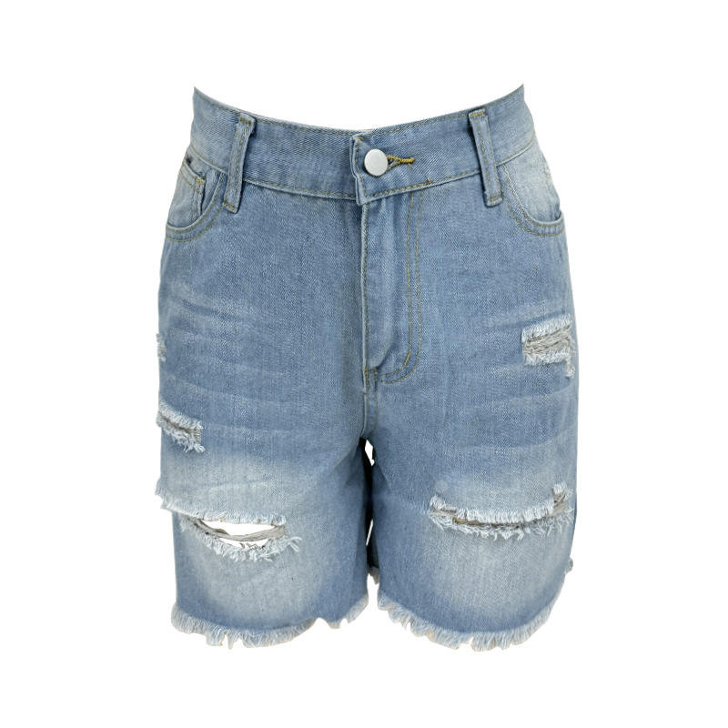 กางเกงขาสั้นผ้ายีนส์สำหรับผู้หญิงขนาดใหญ่แบบยุโรปและอเมริกาขอบดิบสำหรับการค้าระหว่างประเทศแบบข้ามพรมแดน