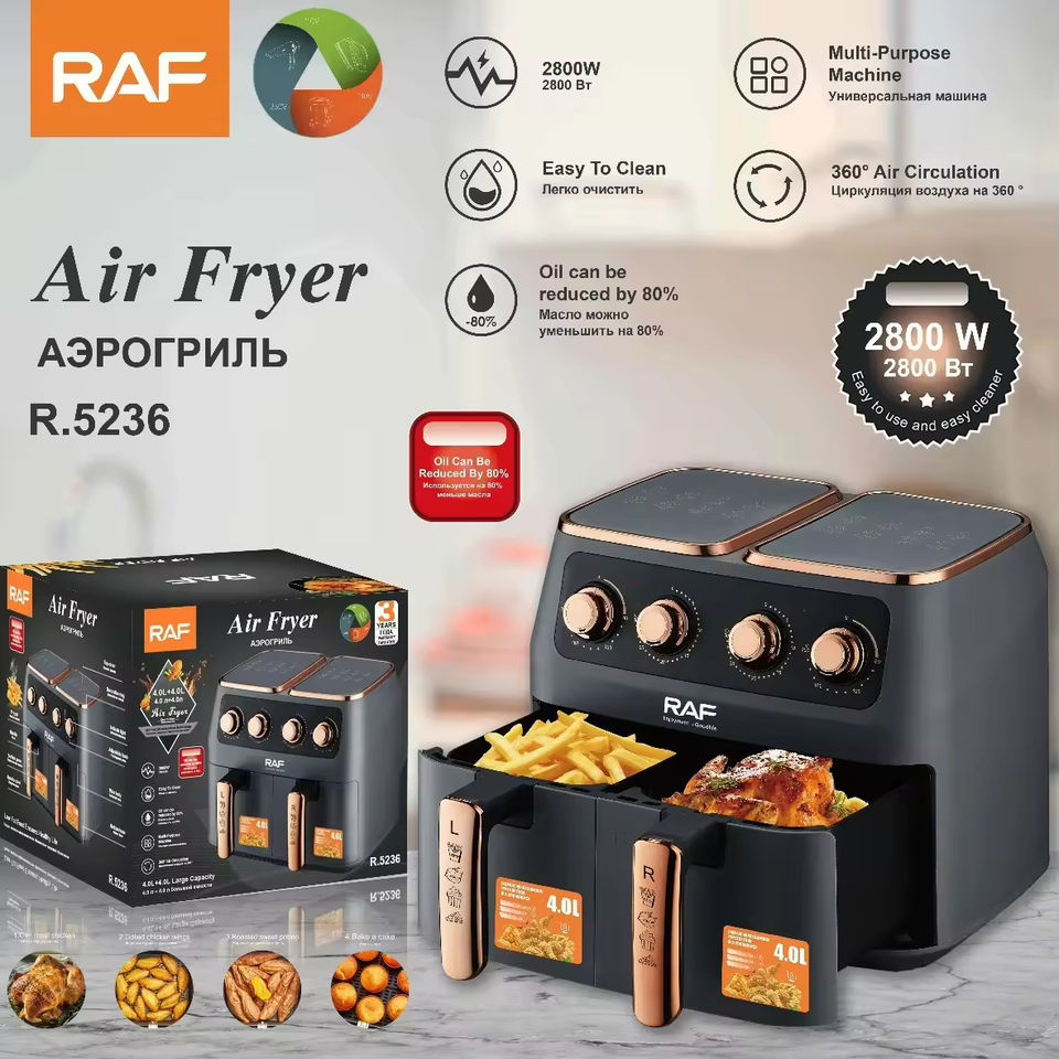 หม้อทอดไร้น้ำมันอัตโนมัติอัจฉริยะแบบยุโรปและอเมริกา วัสดุพลาสติกทันสมัย ใช้งานได้หลากหลาย ขนาดใหญ่ทรงสี่เหลี่ยม สำหรับใช้ในครัวเรือน