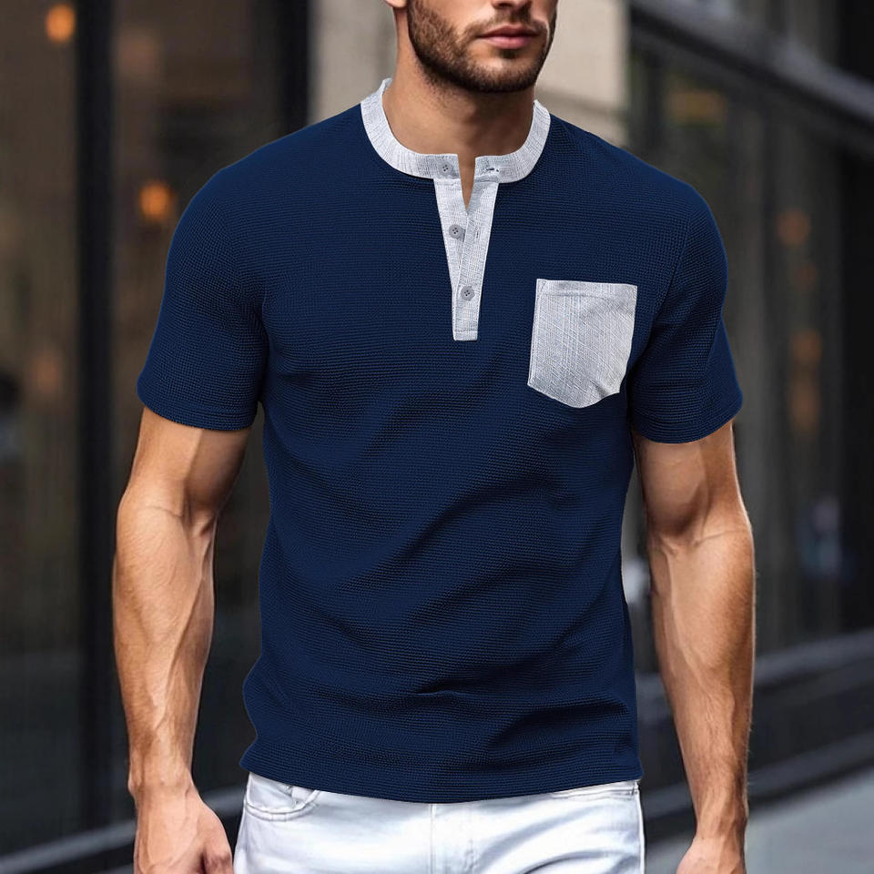 เสื้อผ้าบุรุษสไตล์ยุโรปและอเมริกาสำหรับการค้าข้ามพรมแดน สินค้าใหม่รับซัมเมอร์ ซักเครื่องได้ มีกระเป๋าปะ กระดุมแบบเปิด