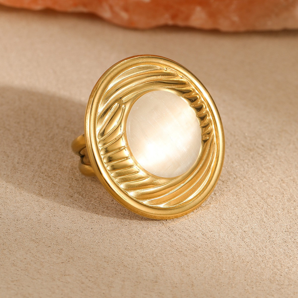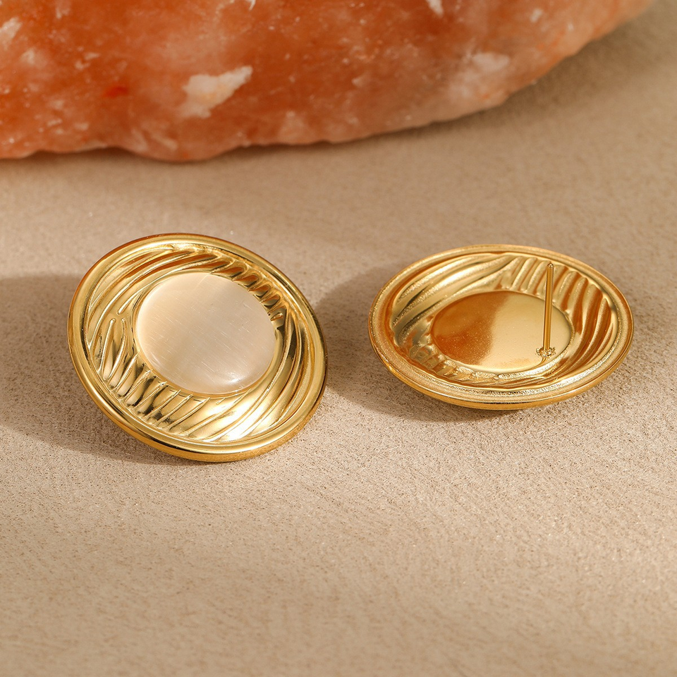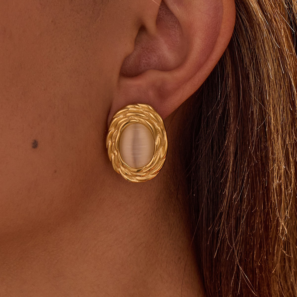 ชุดต่างหูและแหวนไทเทเนียมสไตล์มินิมอลแบบยุโรปและอเมริกา ประดับด้วยหินตาแมว ดีไซน์ทันสมัยและไม่ซ้ำใคร