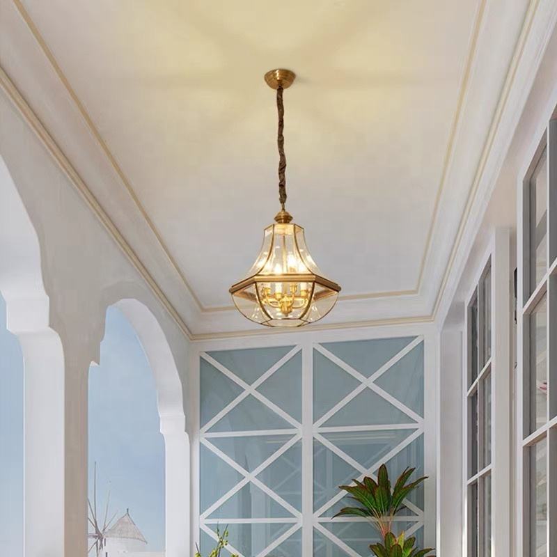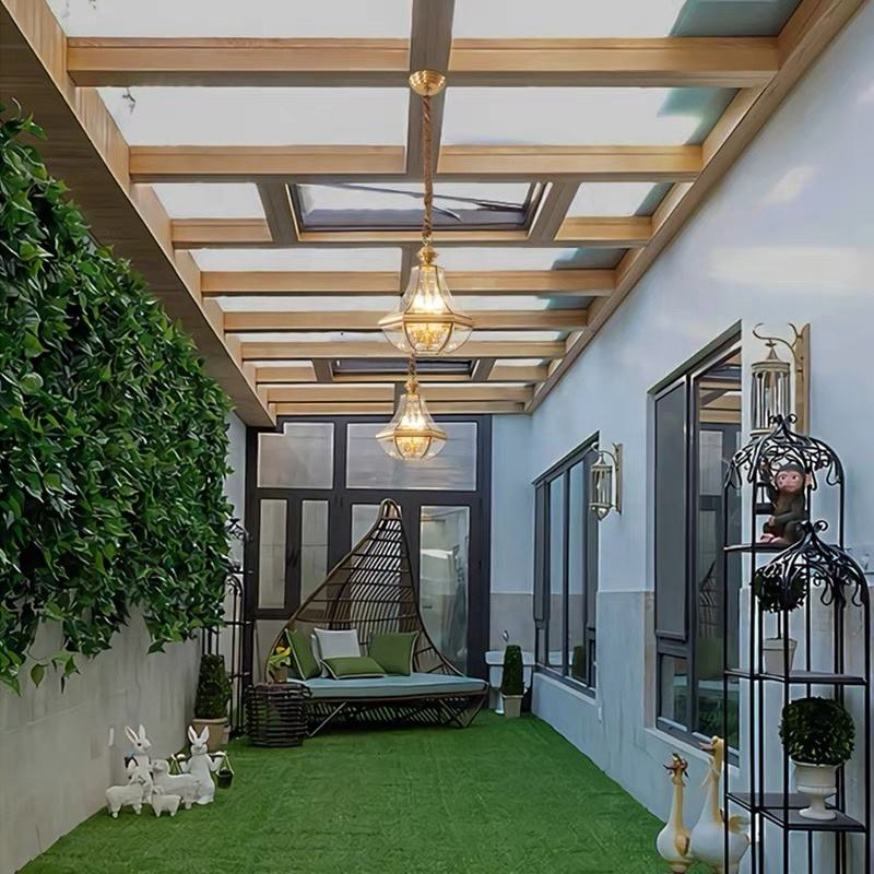 โคมไฟเพดาน LED ทองแดงแท้ สไตล์ยุโรป หรูหรา กันน้ำระดับ IP65 สำหรับภายนอกอาคาร สวน ระเบียง ทางเดิน ศาลา โคมไฟแขวน