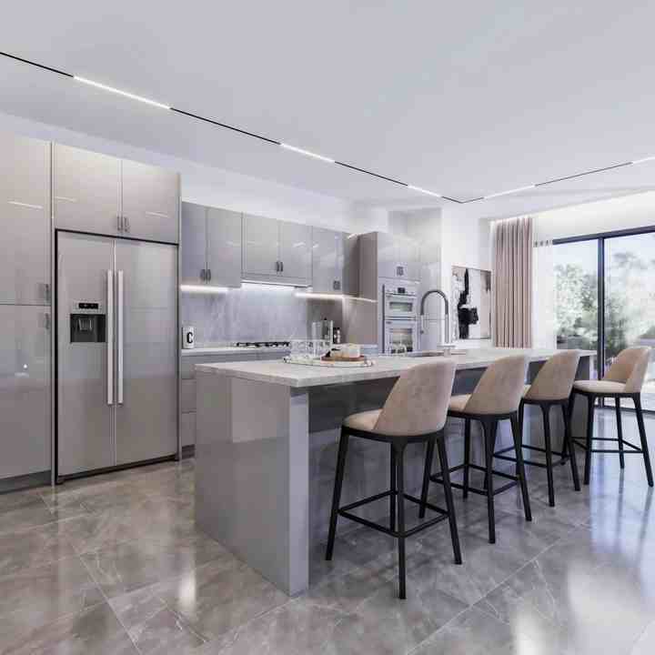 ชุดตู้ครัวแบบยืน ดีไซน์ยุโรปสมัยใหม่ ทำจากไม้จริง MDF เคลือบเมลามีนป้องกันรังสียูวี แบบโมดูลาร์อเนกประสงค์ ผลิตจากโรงงานในเวียดนาม