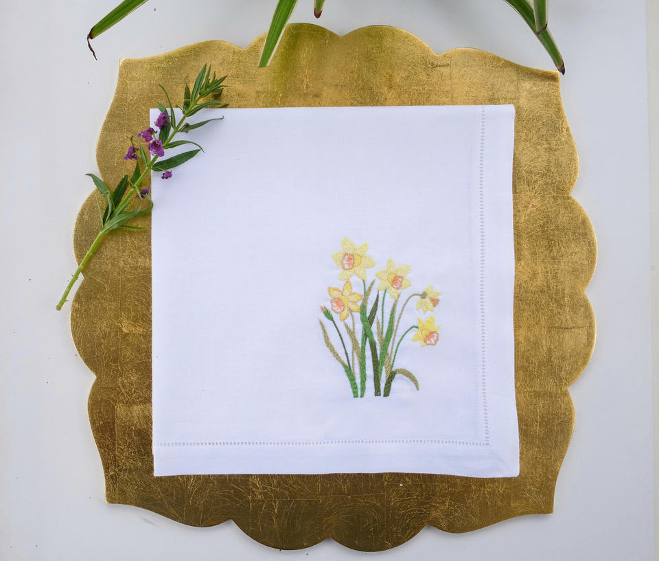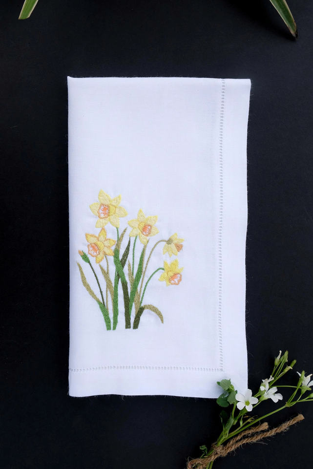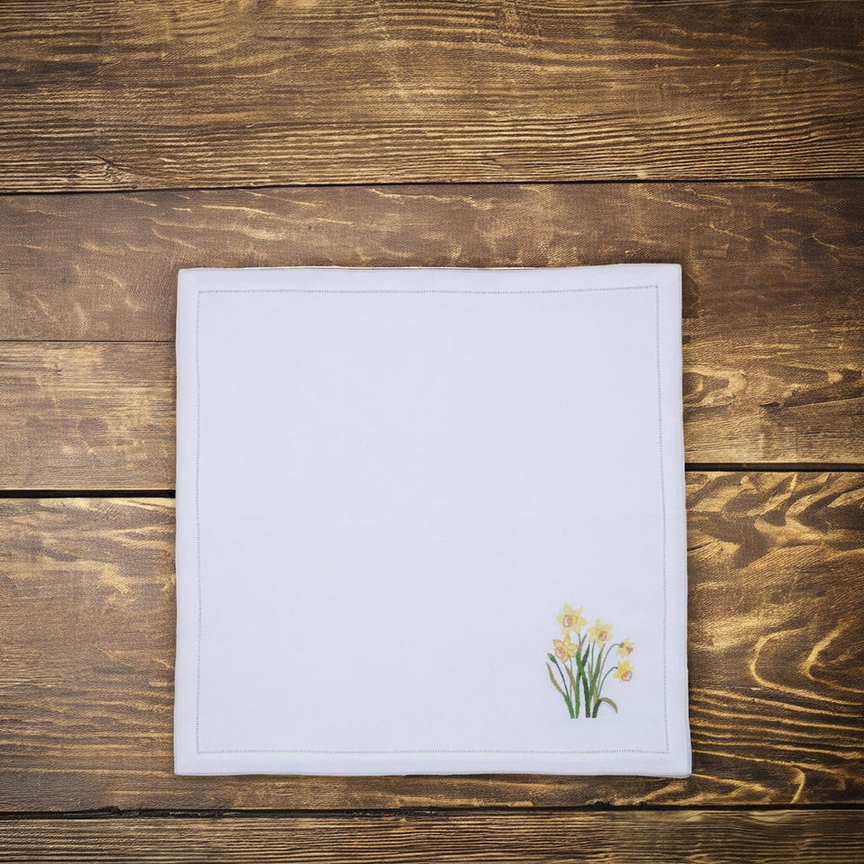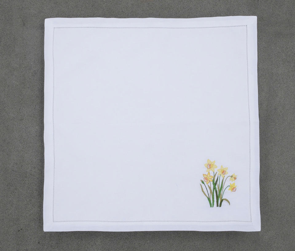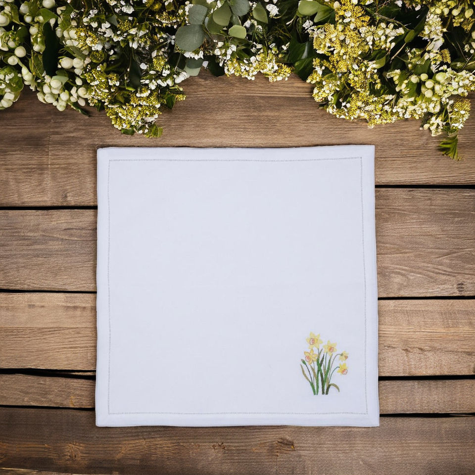 ผ้าลินินสไตล์ยุโรปที่ได้รับแรงบันดาลใจจากฤดูใบไม้ผลิ นุ่มนวลแต่แข็งแรง พร้อมลายปักดอกฟอร์เก็ตมีน็อต เพิ่มความอบอุ่นให้กับงานแต่งงาน งานอีเว้นท์ และการรับประทานอาหารในชีวิตประจำวัน