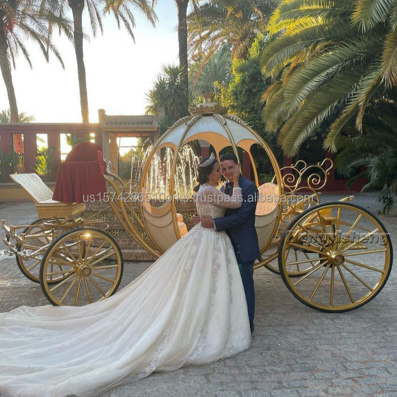 รถม้าไฟฟ้าทรงฟักทองโลหะแบบคลาสสิกสไตล์ยุโรปสำหรับงานแต่งงาน