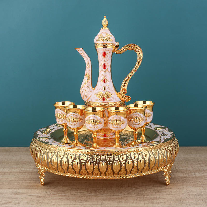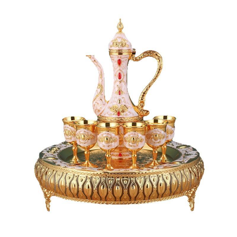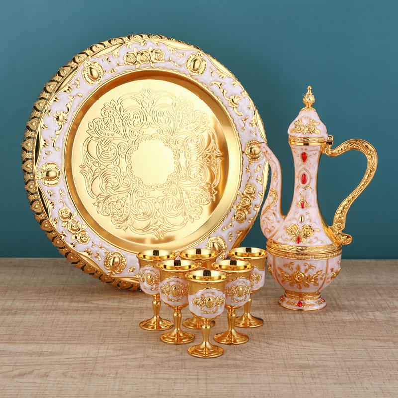 ชุดไวน์สไตล์ยุโรป ขวดไวน์โบราณ ดีไซน์สร้างสรรค์ หรูหราแบบอาหรับตะวันออกกลาง ชุดไวน์โลหะ 8 ชิ้น คุณภาพสูง
