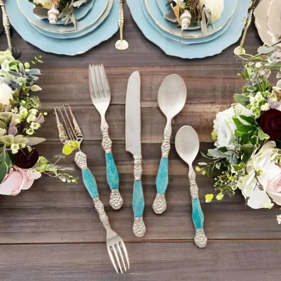 ชุดเครื่องใช้บนโต๊ะอาหารทำจากโลหะชุดเครื่องใช้บนโต๊ะอาหารด้ามกระดูกสำหรับงานแต่งงานและงานเลี้ยงทำจากสเตนเลสสไตล์ยุโรป